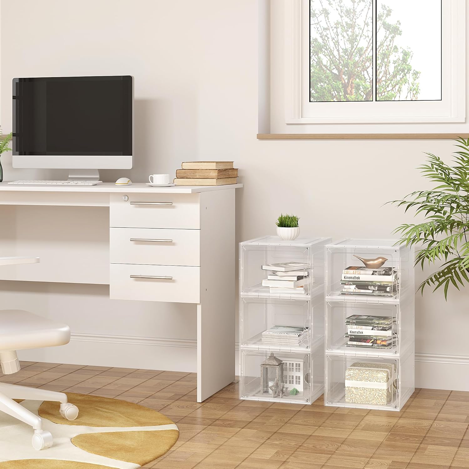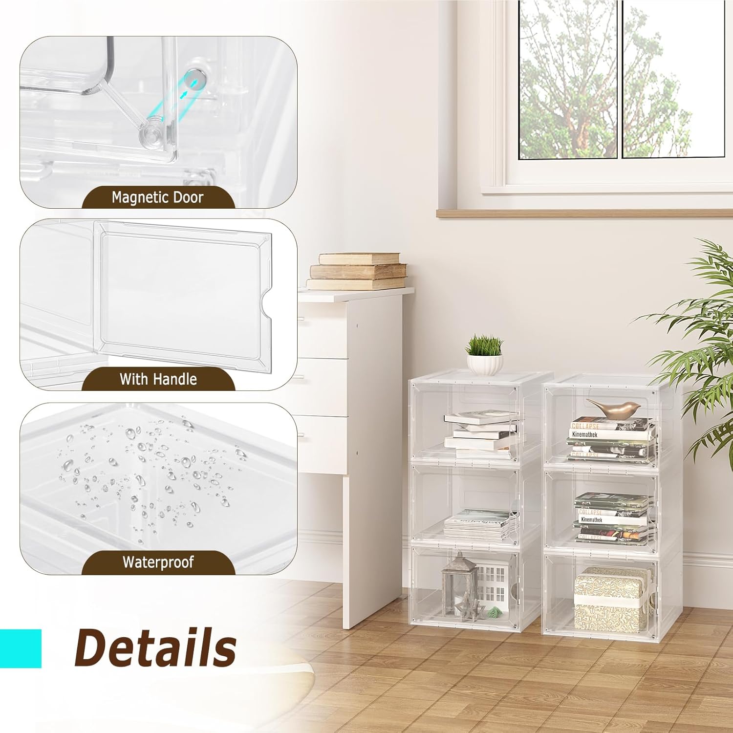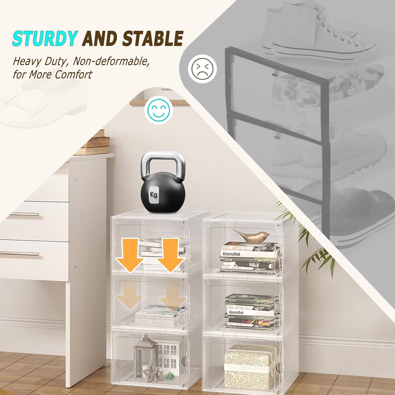 • HOHE QUALITÄT: Der stapelbare Schuh-Organizer aus haltbarem ABS und Hartplastik (PP) hat einen stabileren Rahmen und eine längere Lebensdauer als die herkömmlichen faltbaren Schuhkartons. Er ist glatt, wasserdicht und nicht leicht zu verformen