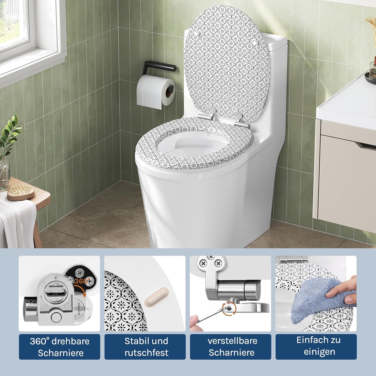 - EINFACHE MONTAGE: Detaillierte Anleitung und ein verbessertes Zubehörset ermöglichen eine einfache Montage innerhalb weniger Minuten. Selbst Anfänger können den O-förmigen Soft-Close-Toilettensitz leicht einbauen