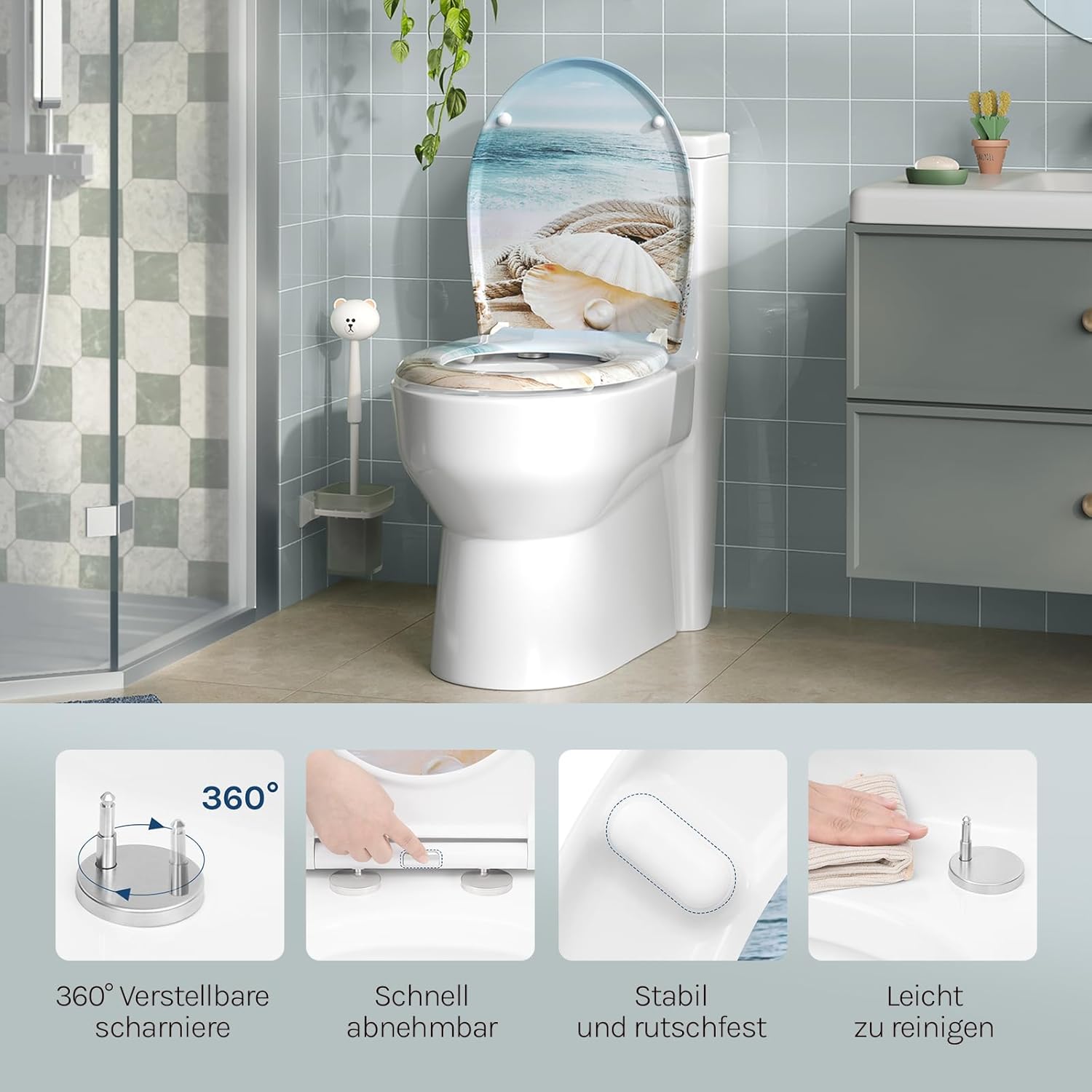 - RUTSCHFEST & EINFACHE MONTAGE: Mit rutschhemmenden Puffern bleibt der Toilettensitz stabil und verrutscht nicht. Im Lieferumfang sind eine bebilderte Montageanleitung sowie einfaches Befestigungszubehör für die Montage von oben enthalten