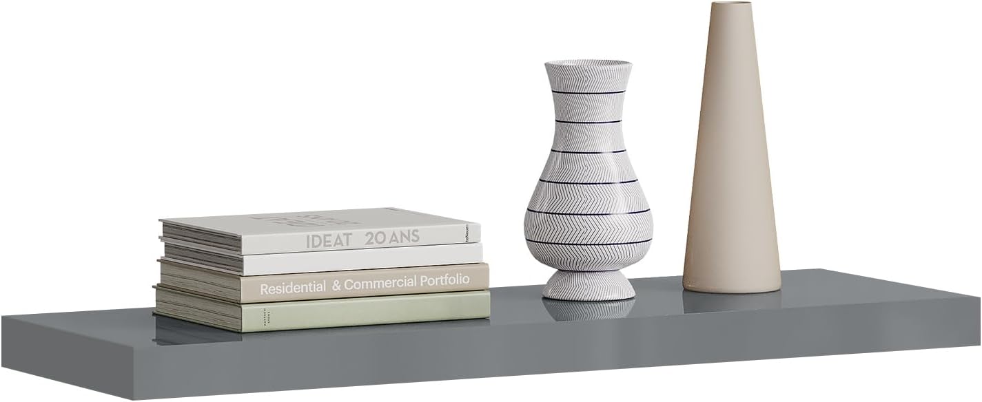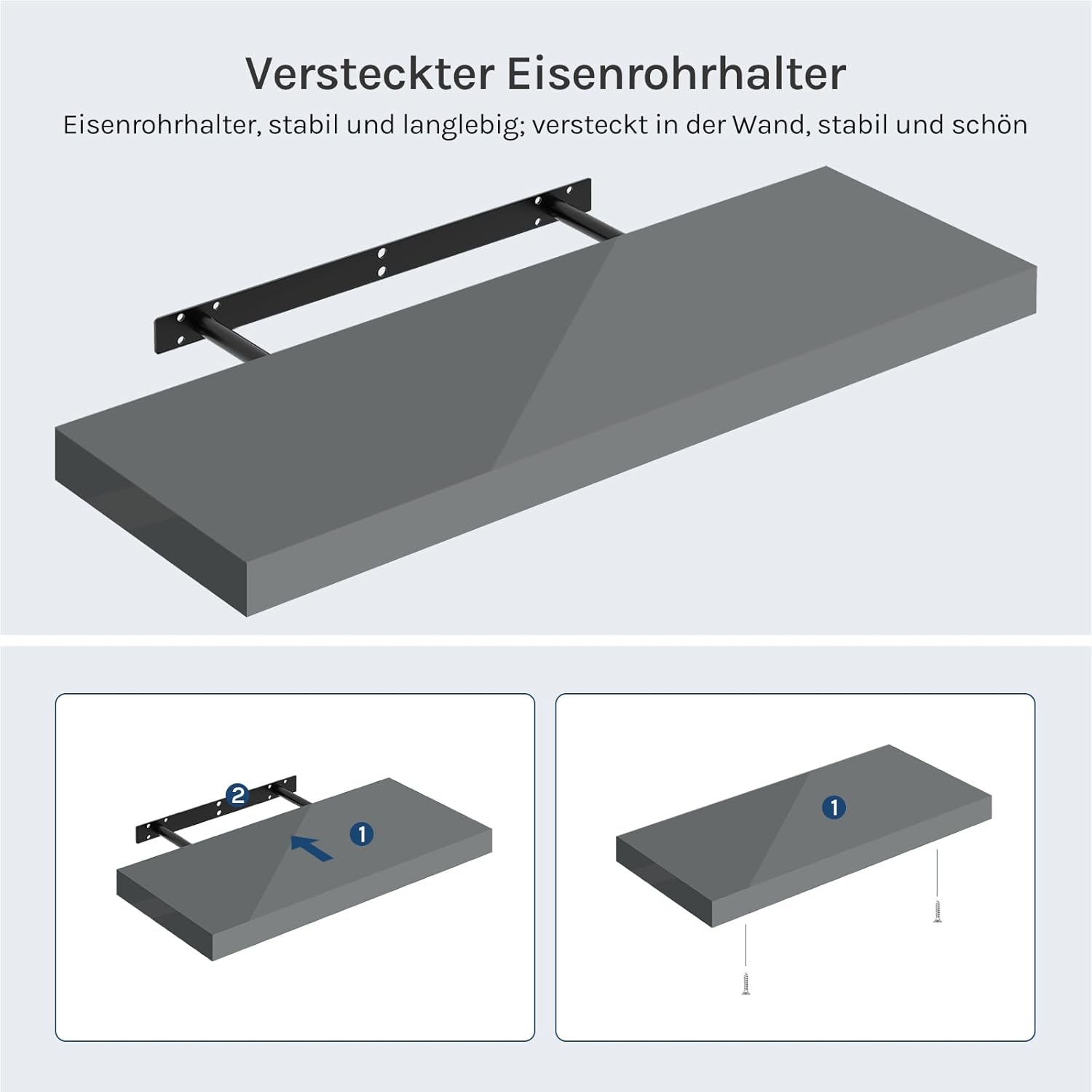 - Das schwebende Regal hat ein hochglanz grau Finish, lässt sich problemlos in jeden Einrichtungsstil integrieren.