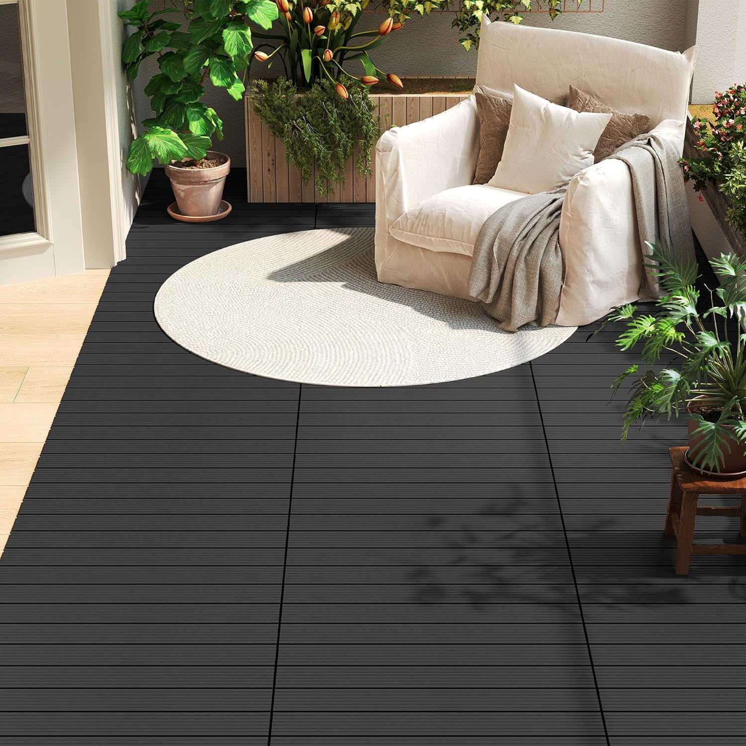 - Mehre Kombination: jede in 30x60cm und 12 Stücke, Die Fliesen können mit anderen Farben der Fliesen kombiniert werden. Ausserdem können die WPC Terrassenfliesen mit Stein-Klickfliesen oder Rasenfliessen kombiniert werden