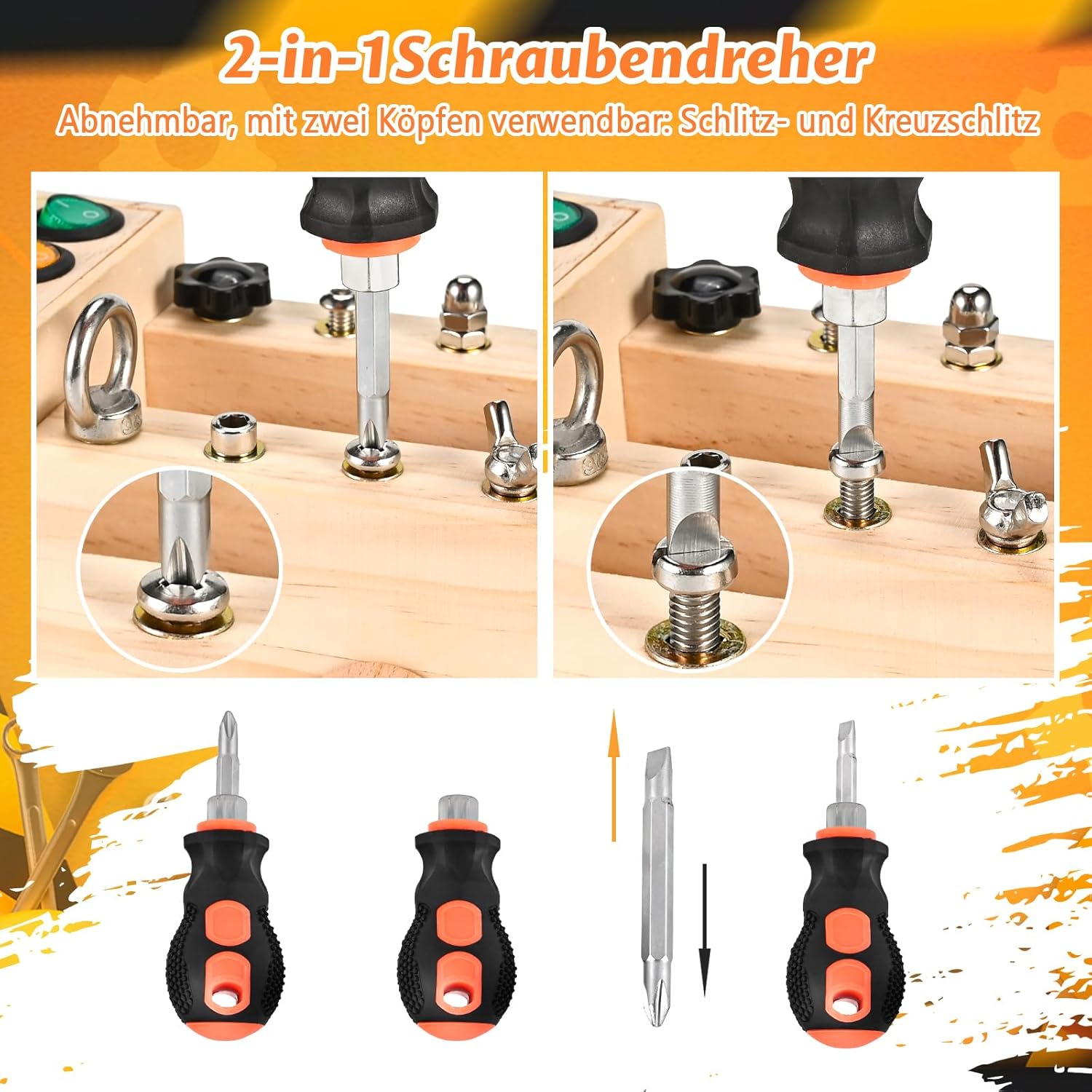 - Multifunktionales Kinderspielzeug: Das Montessori-Kleinkind-Beschäftigungsbrett ist ein einzigartiges Lernspiel, das für Kinder ab 3 Jahren geeignet ist. Es hilft den Kindern, den Umgang mit Schraubenziehern, verschiedenen Werkzeugen und das richtige