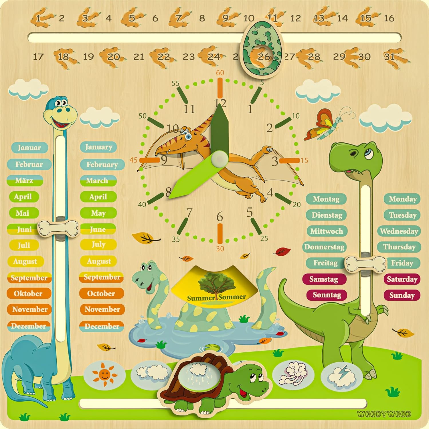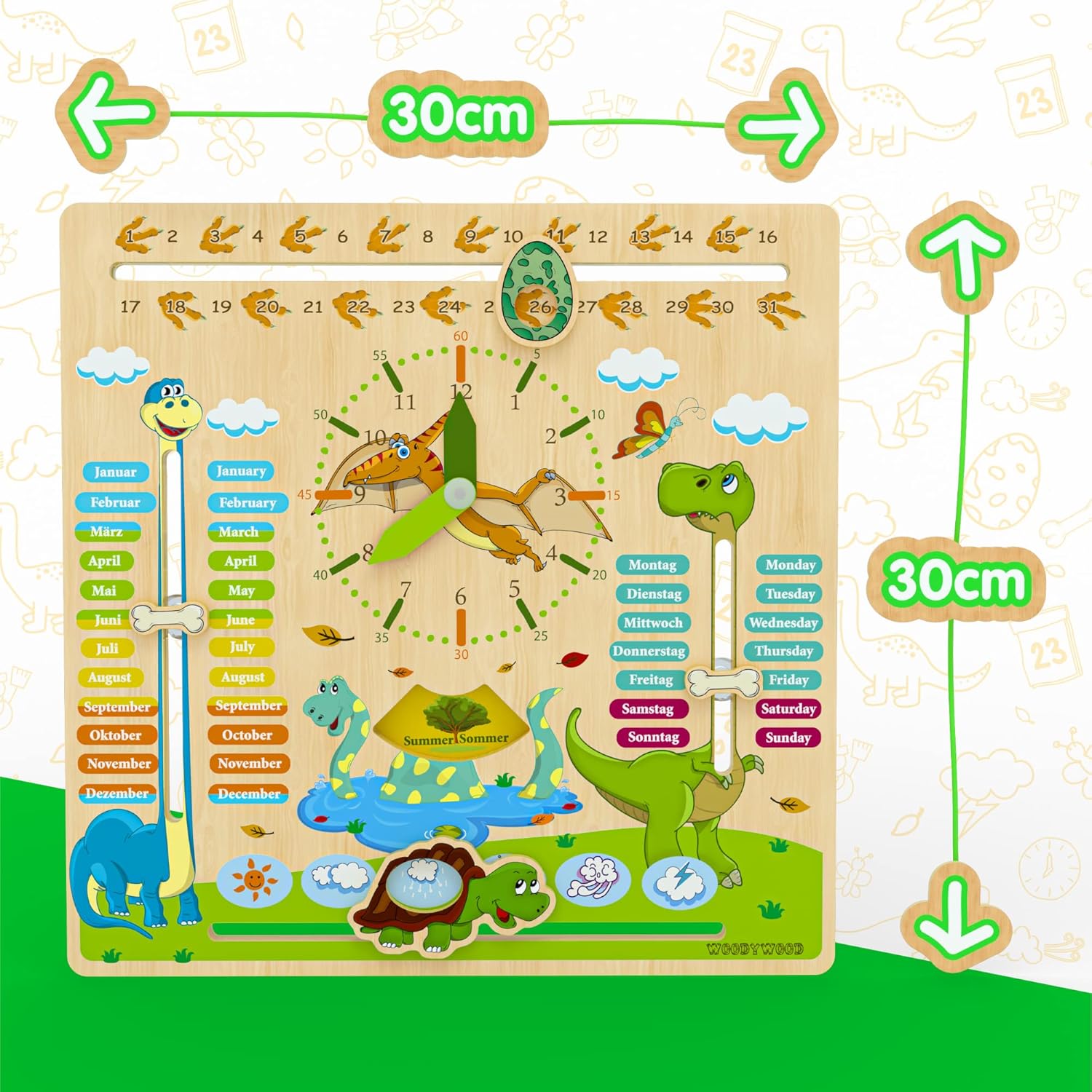 WoodyWoodยฎ Kalenderuhr fรผr Kinder - Lernuhr aus Holz, zweisprachig, 30 X 30 cm - Montessori Jahresuh