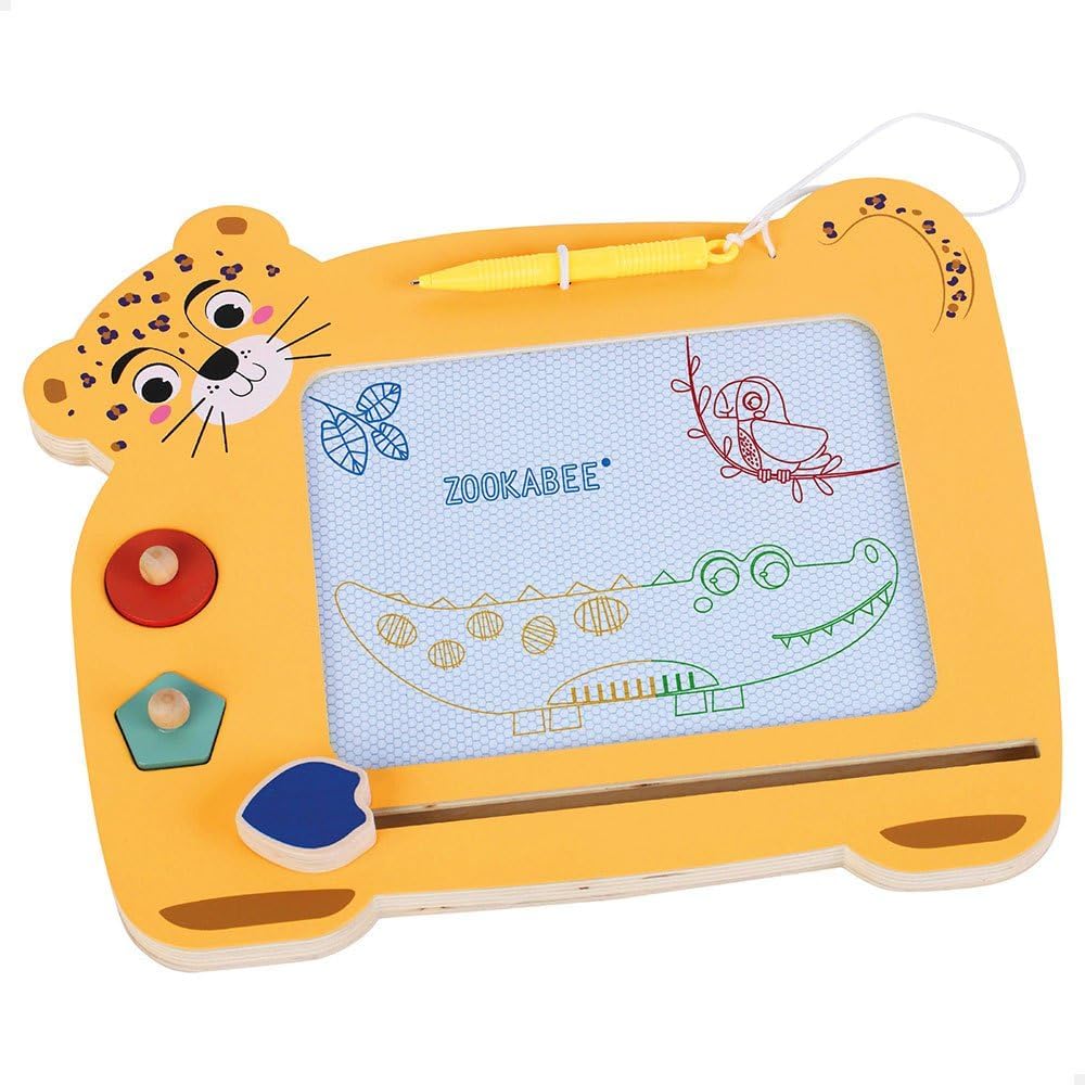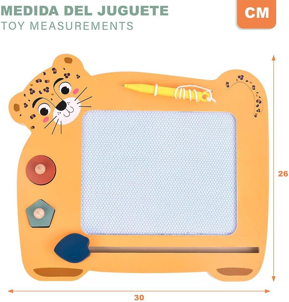 • Design und Zubehör: Grosser Zeichenbereich und Rand mit Tiger-Design. Inklusive 1 Bleistift und 2 Magnetstempel mit geometrischen Formen, um sie zu Ihren Kreationen hinzuzufügen
