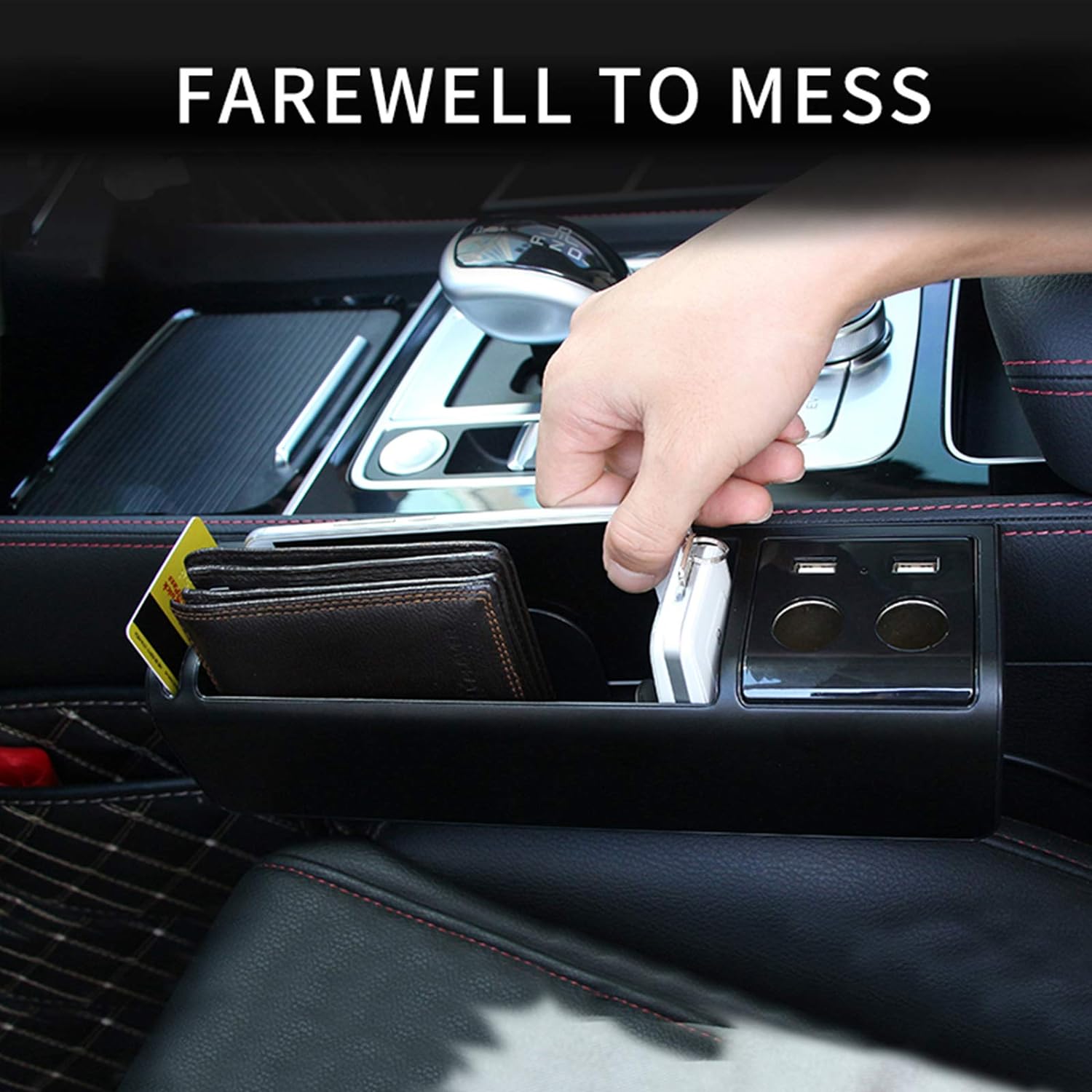 • ★【MULTIFUNKTIONEN】Leistungsstarker Stauraum mit 2 x USB-Aufladung und 2 x Aufladen des Zigarettenanzünders im Auto kann Brieftaschen / Münzen / Mobiltelefone / Führerschein / Schlüssel / Visitenkarten aufbewahren, um Ihr Auto komfortabel und
