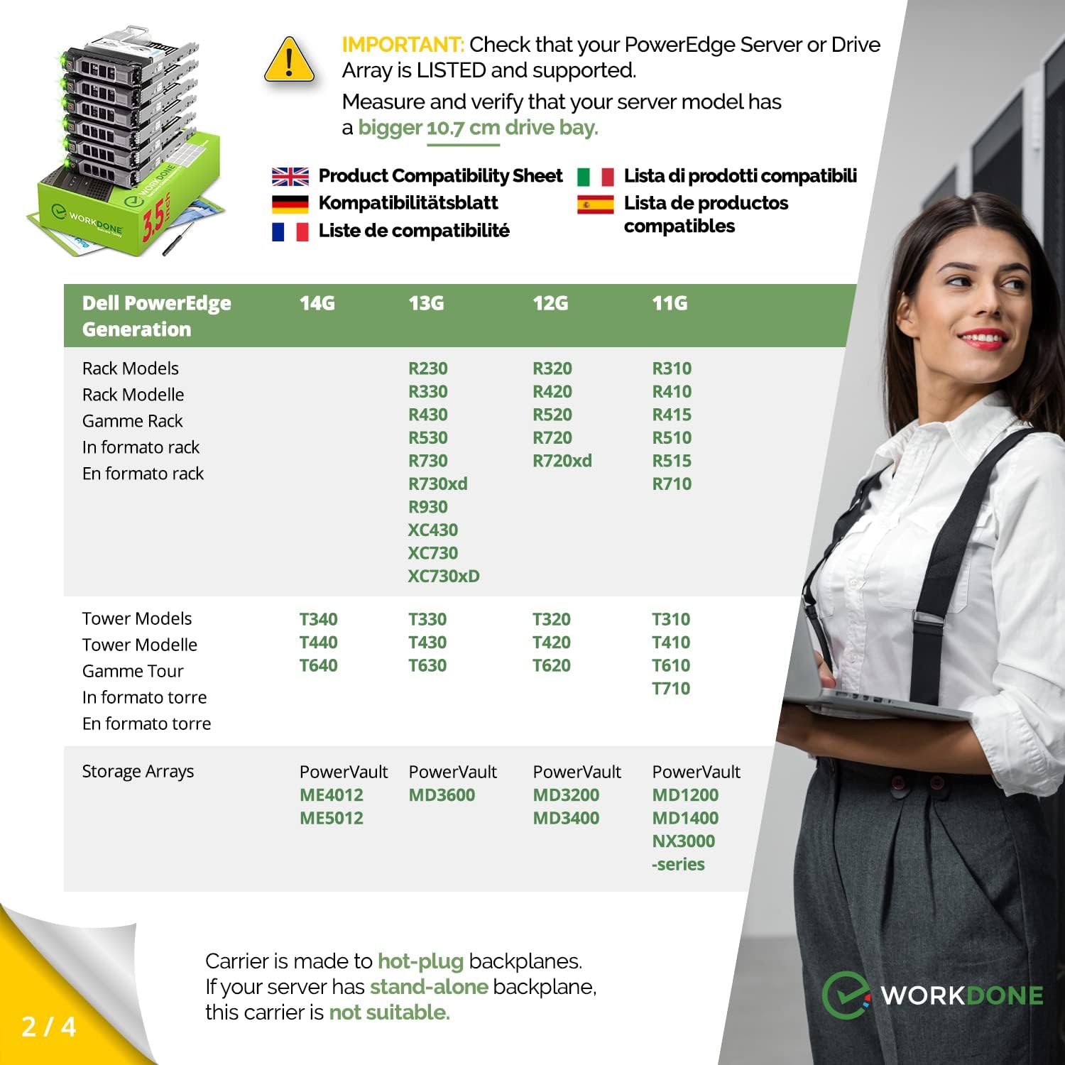 - UNTERSTÜTZTE 3,5-Zoll MODELLE: PowerEdge T340, T440, T640 der 14. Generation; PowerEdge R230, R330, T330, R430, T430, R530, T630, R730, R730xd, R930, XC430, XC730, XC730xd der 13. Generation; PowerEdge 12. Generation R320, T320, R420, T420, R520, T620, R720, R720XD; PowerEdge 11. Generation R310, T310, R410, R415, T410, R510, R515, T610, R710, T710; PowerVault ME4012, MD3600, MD3400, MD3200, NX3000, MD1200, MD1400