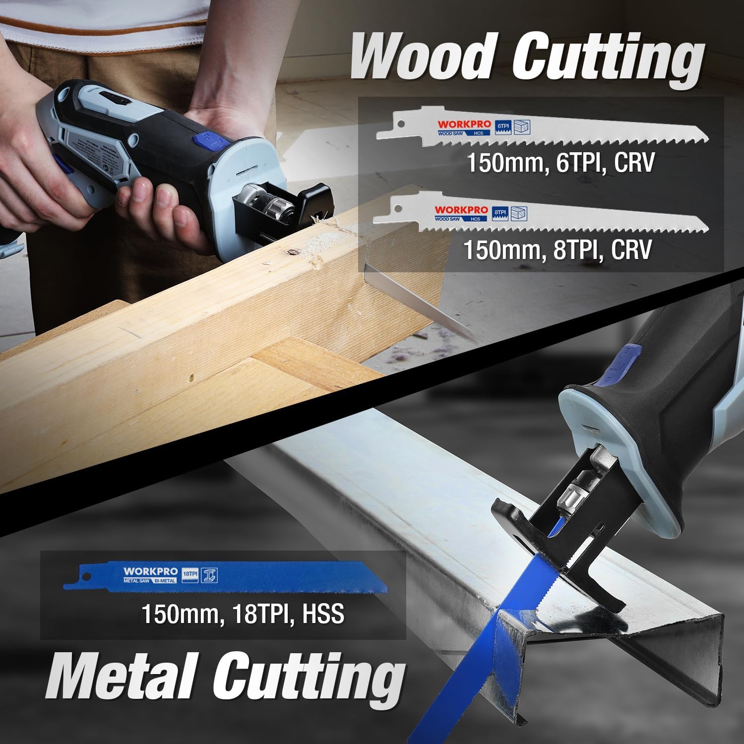 - 【𝘼𝙉𝙒𝙀𝙉𝘿𝙐𝙉𝙂𝙀𝙉】WORKPRO Säbelsäge ist perfekt für müheloses Schneiden von Holz, Metall & PVC, und eignet sich für unterschiedliche Einsatzbereiche.