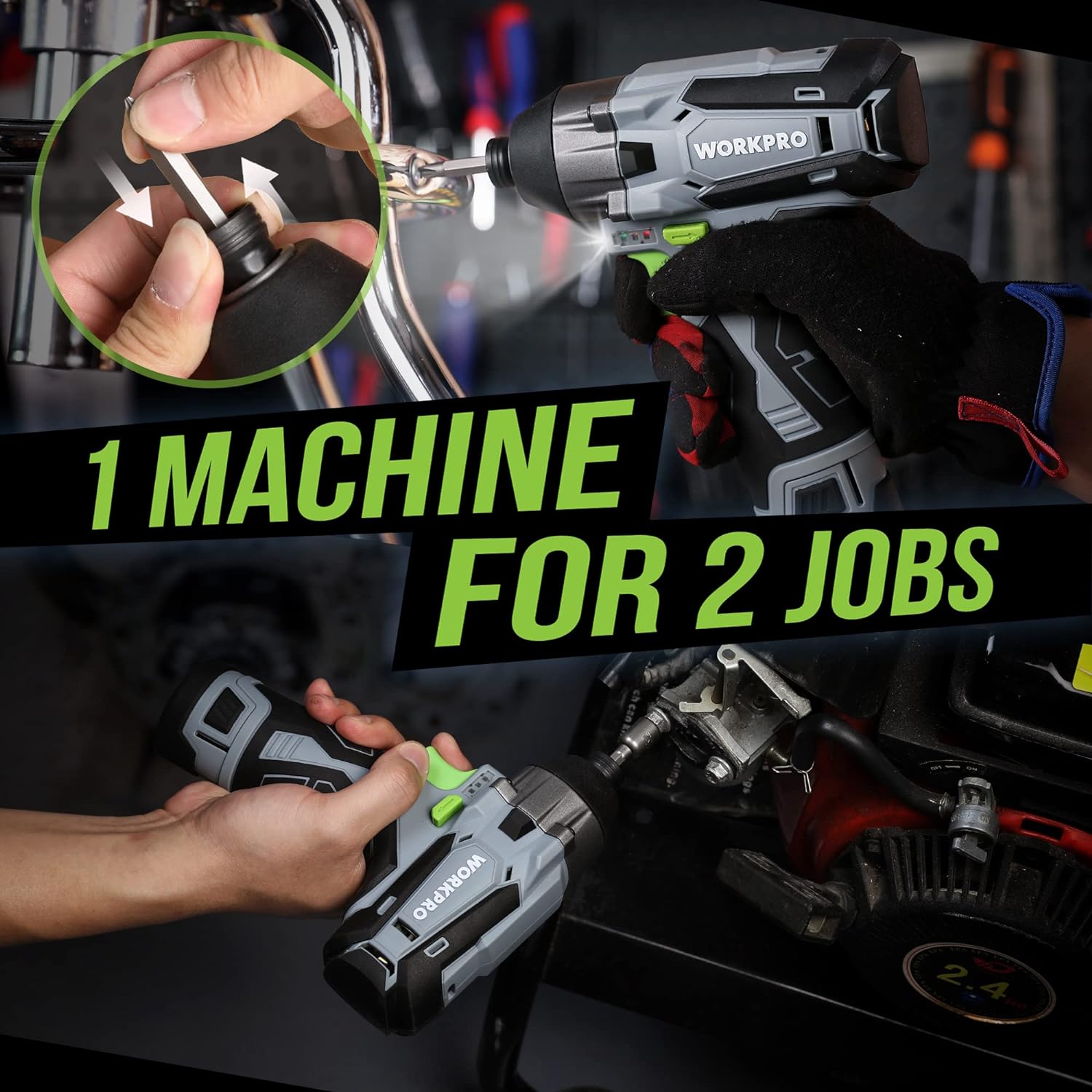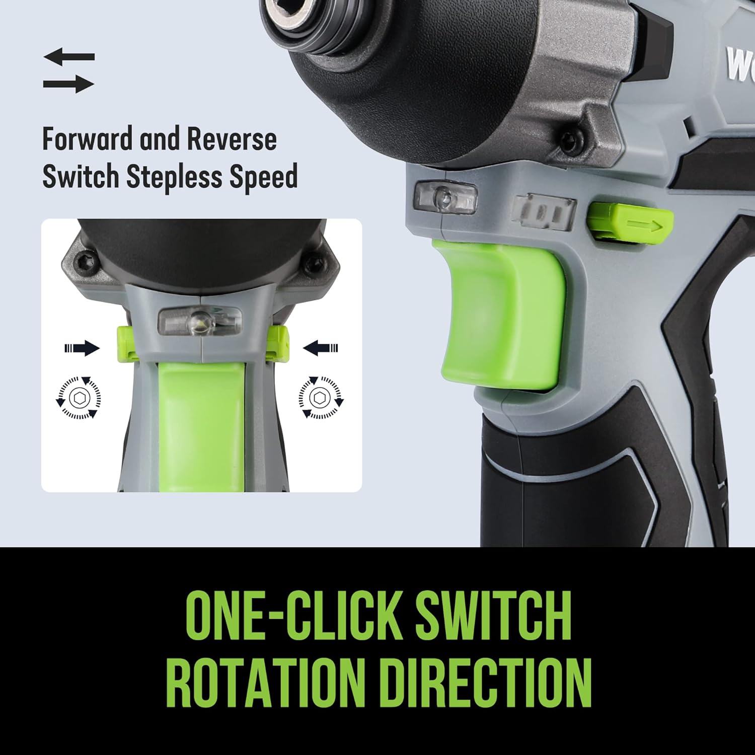 - 【1/4" Schnellspannfutter】Dieser Akku-Schlagschrauber verfügt über ein 1/4"(6,35mm) Spannfutter, mit dem Sie Bits oder Stecknüsse schnell wechseln können, und eine hervorragende Zubehörkompatibilität.