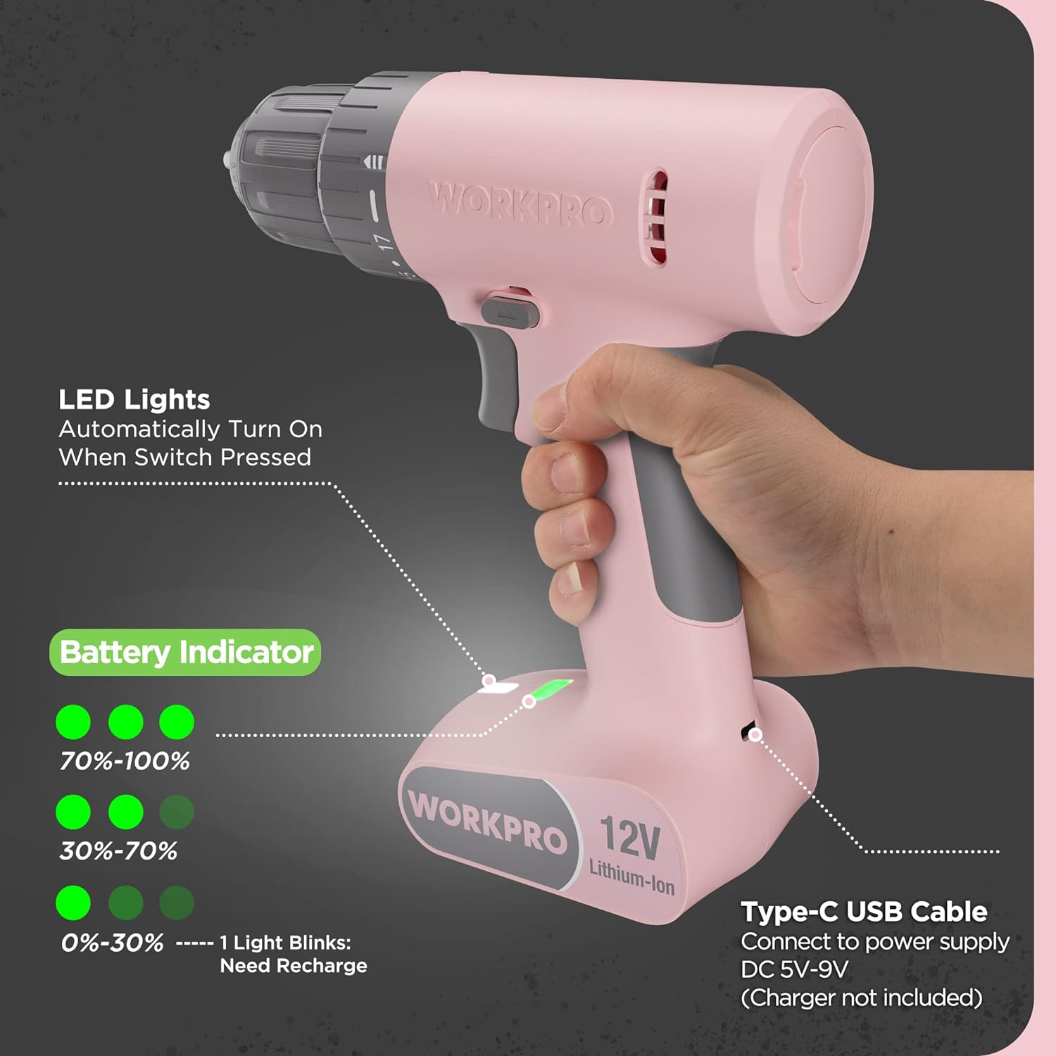 - đšăCleveres Designă Ausgestattet mit einer LED-Beleuchtung lĂ€sst es sich in dunklen Ecken gut arbeiten. Die Batterieanzeige zeigt deutlich den Batteriestand an. Mit dem Typ-C-USB-Kabel (1m) könnten Sie eine Verbindung zu einer Stromversorgung (DC
