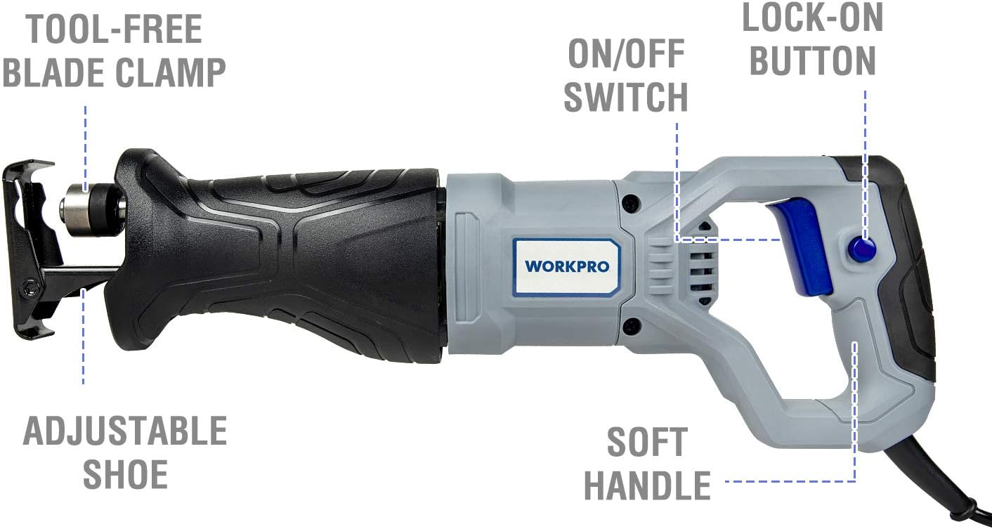 - ➠【𝐀𝐍𝐖𝐄𝐍𝐃𝐔𝐍𝐆𝐄𝐍】WORKPRO Säbelsäge ist perfekt für müheloses Schneiden zum Holz, Stahl & PVC, und eignet sich für unterschiedliche Einsatzbereiche.