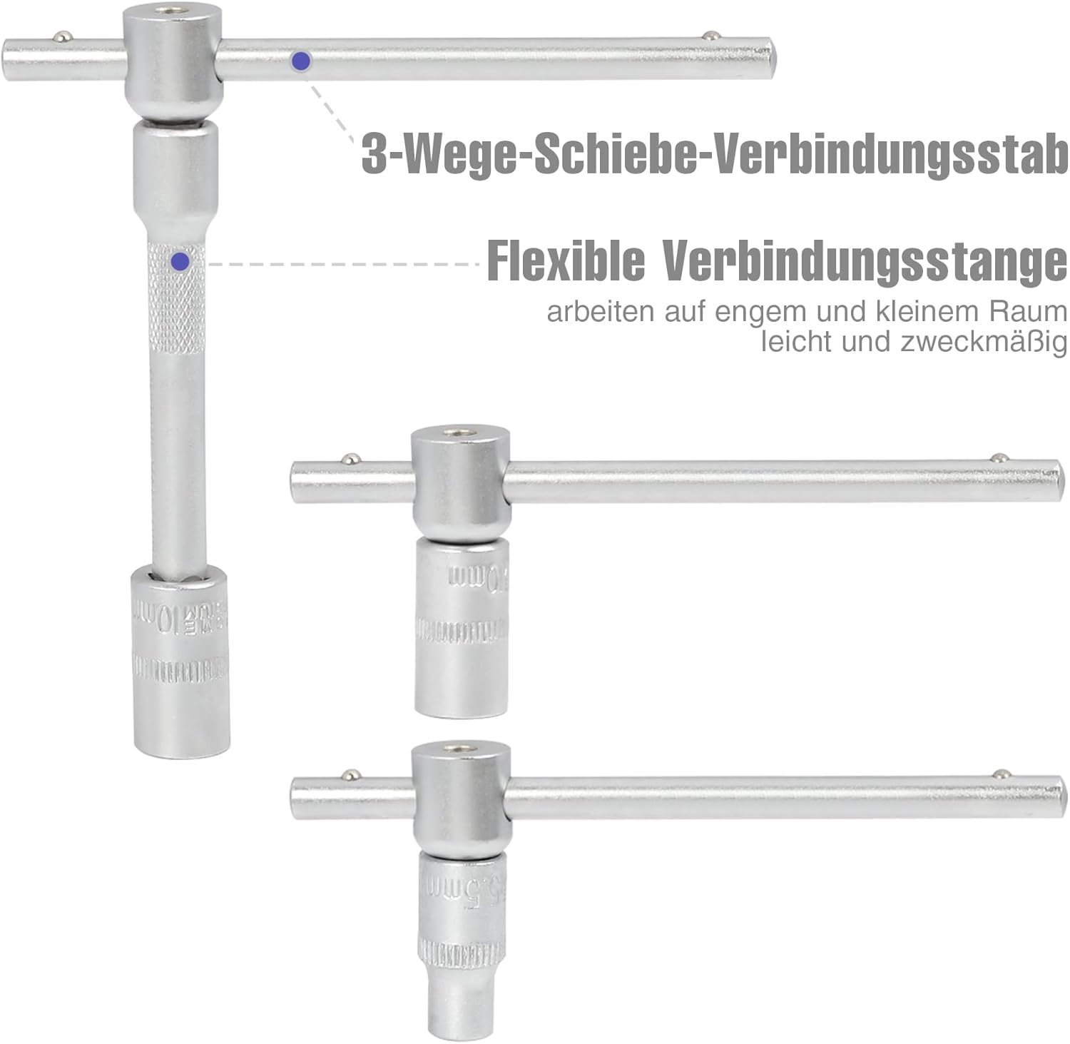 - ➤【𝙃𝙊𝘾𝙃𝙒𝙀𝙍𝙏𝙄𝙂】Steckschlüsselsatz wurde aus Chrom-Vanadium-Stahl durch die Behandlung von Galvanoplastik und thermische hergestellt und verfügt über eine lange Haltbarkeit und Stabilität.