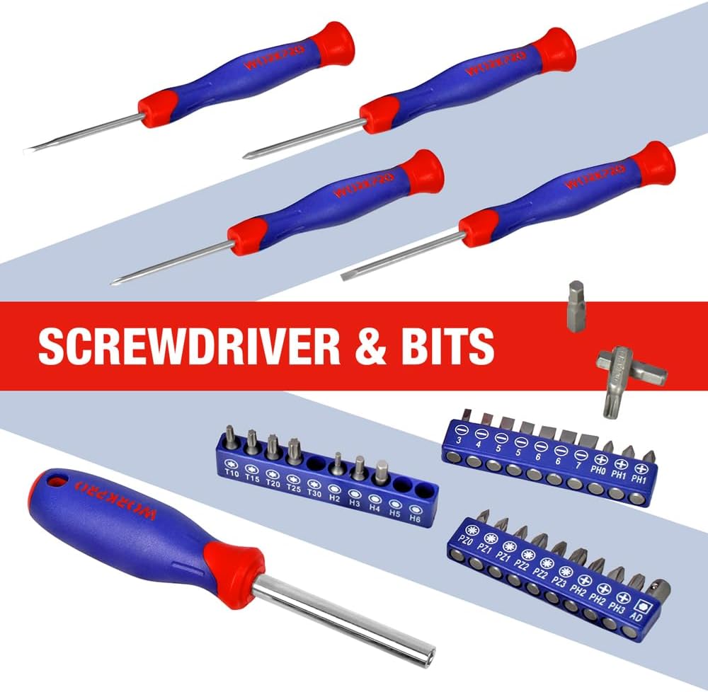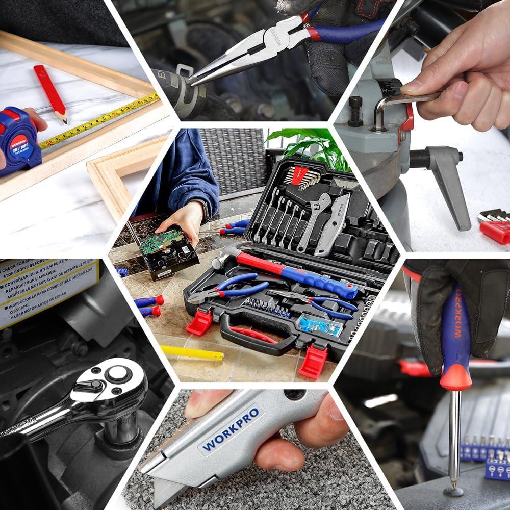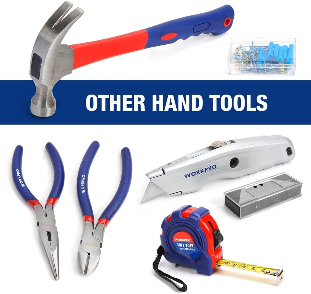 - 【160 Werkzeuge】WORKPRO 160tlg. Basiswerkzeug Set enthält Schraubendreher, Ringschlüssel, Steckschlüssel, Innensechskantschlüssel, Hammer und Zangen usw.