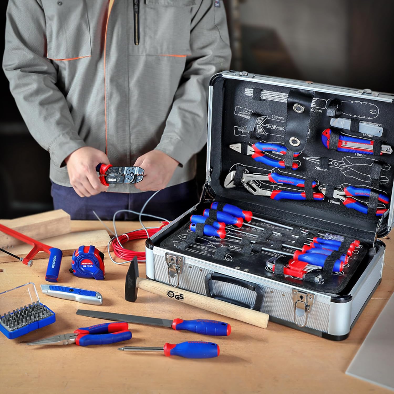 - 🔎【Vielseitige Anwendungen】:Das Komplett Aluminum Werkzeug Set bietet Ihnen neben Hammer und Schraubendreher auch eine Kombizange,diverse Schraubenschlüssel sowie einen Ratschenschlüssel,Messer,Massband usw. Praktischfastalles was Sie brauchen im