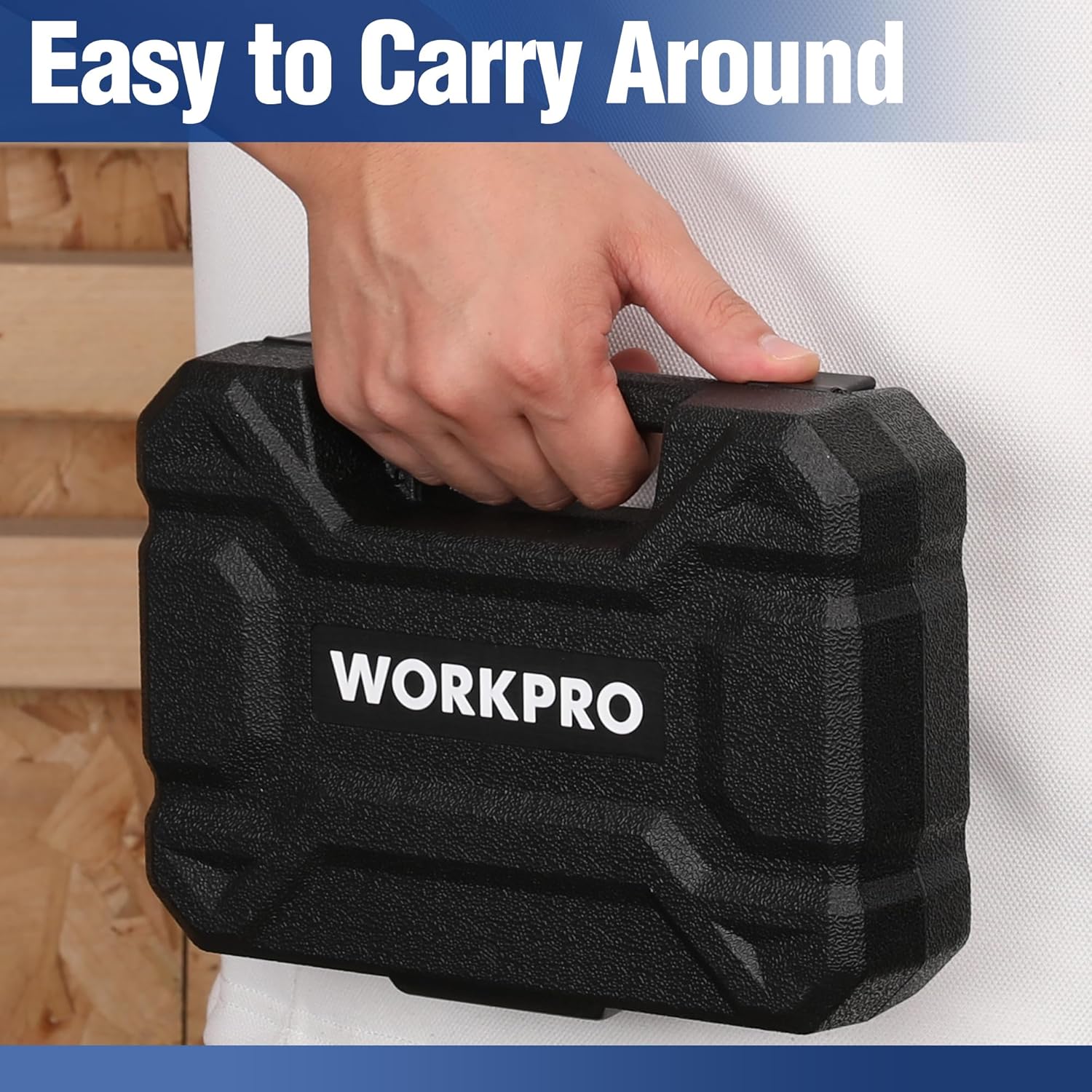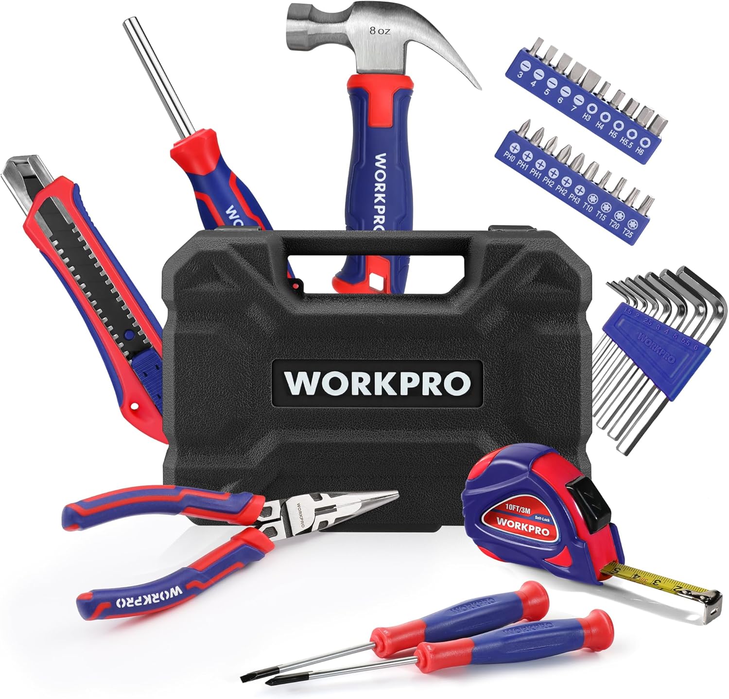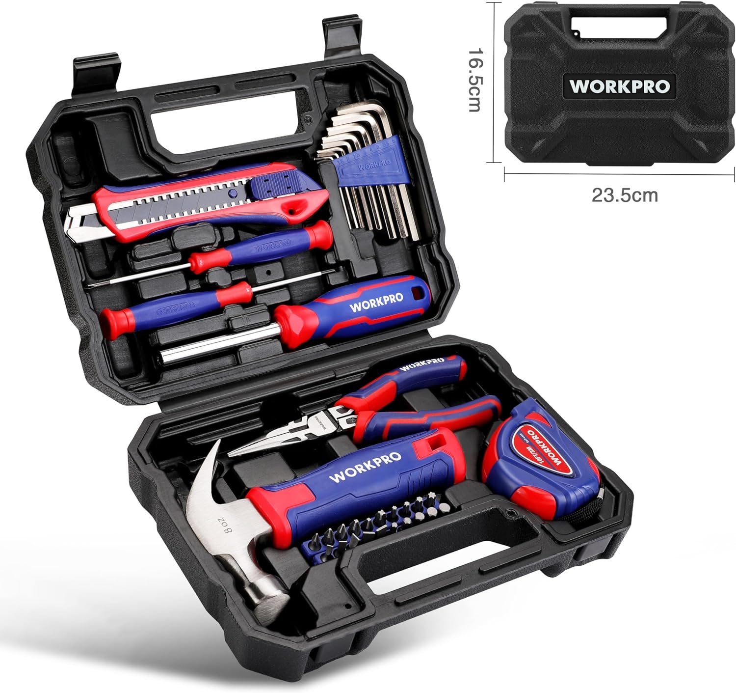 - Das 35tlg. WORKPRO Werkzeugset enthält die üblichen Handwerkzeuge: Hammer, Massband, Cuttermesser, Spitzzange, Schraubendreher und Innensechskantschlüssel.