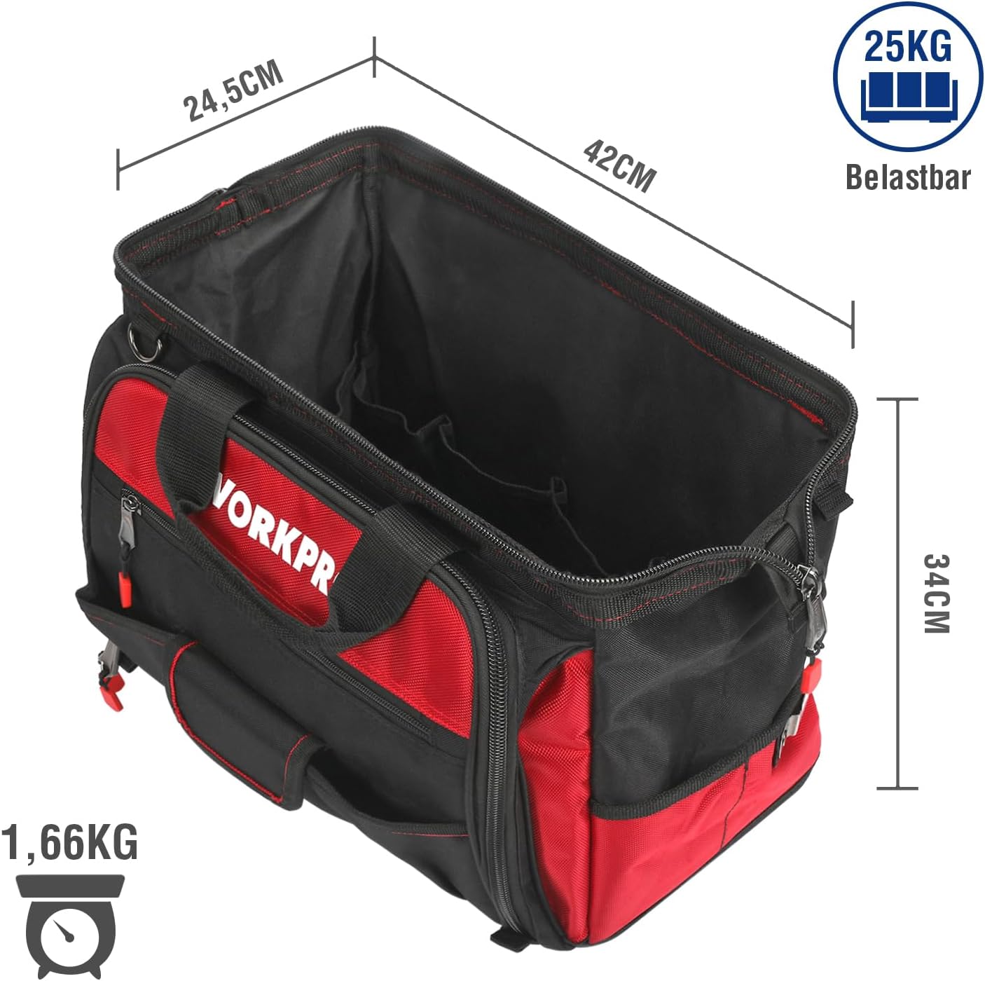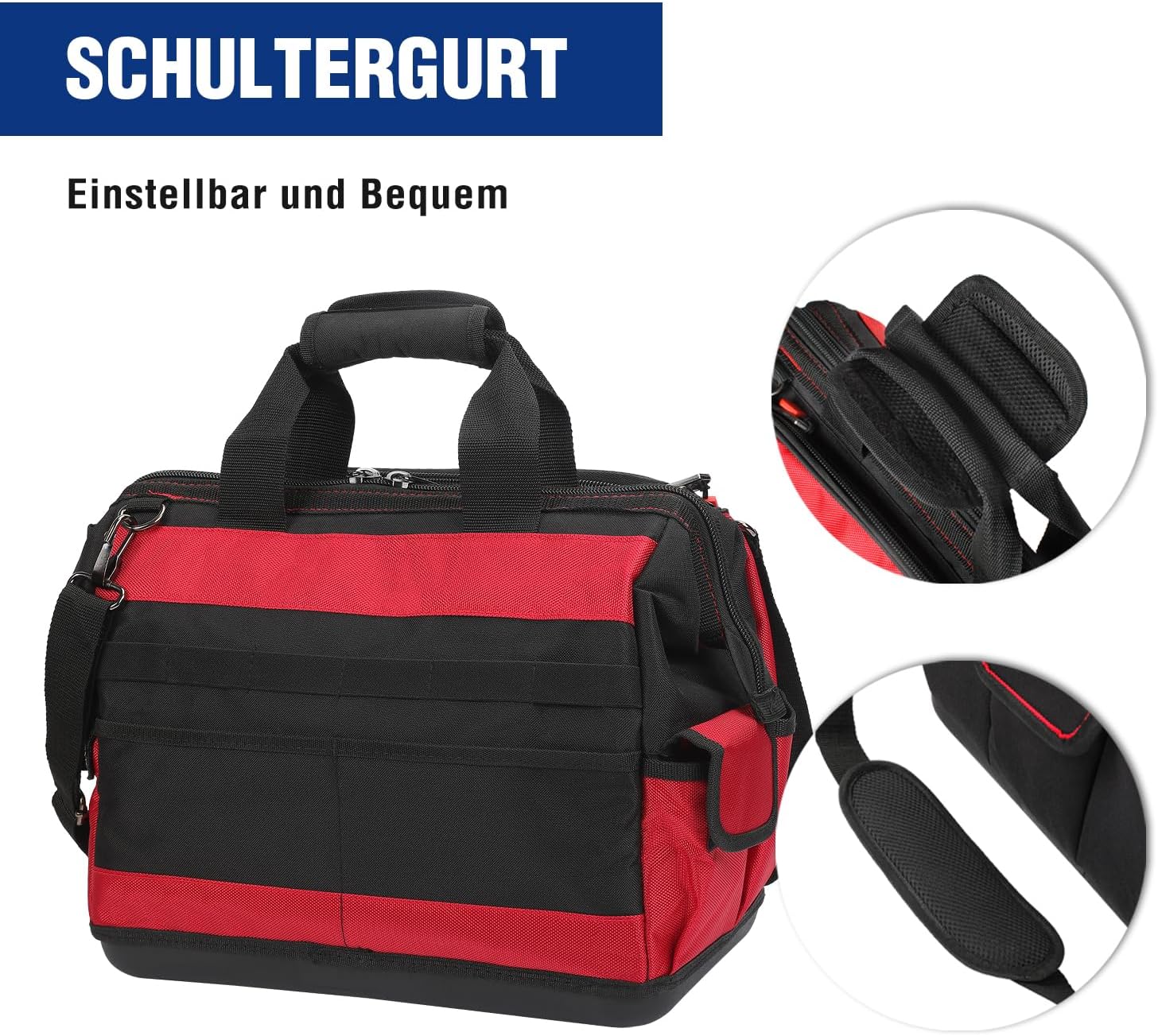 - 【Grosser Platz】 Grösse: 42 x 25 x 35 cm, Gewicht: 1,66 kg. Dank des grossen offenen Munddesigns können Sie Werkzeuge leicht ein- und ausnehmen. Mit dieser Werkzeugtasche können Sie Werkzeuge leicht überall hin mitnehmen.
