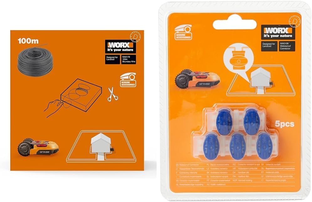 - Produkt 2: Original WORX Zubehör: Die wasserfesten Steckverbinder überzeugen durch ihre einfache Handhabung und Robustheit - ein Must-Have für jeden Landroid Rasen-Roboter Besitzer!