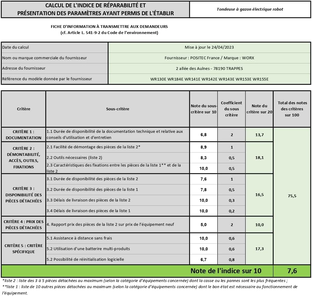 - Lieferumfang: 1 x Worx WR143E Landroid Rasenroboter, 9 x Messer & Schrauben, 1 x 20V Li-Ionen Akku, 1 x Ladestation inkl. Netzteil & Befestigungsnägeln, 1 x 180 m Begrenzungsdraht inkl. 250 Heringe