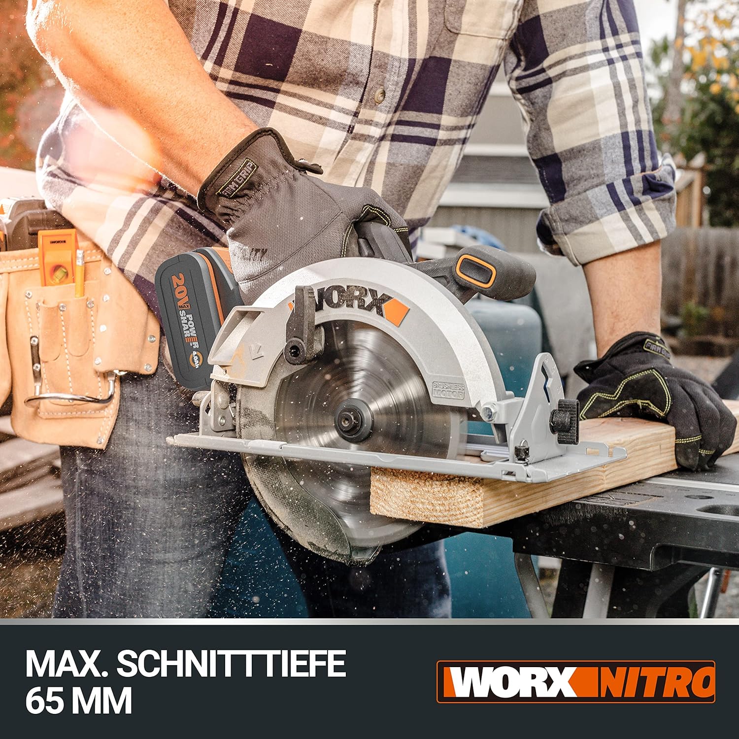 - LIEFERUMFANG: 1x WORX Akku Kreissäge WX520, 1x Akku 20V/4000 mAh WA3553, 1x 2A Ladegerät WA3880, 1x Inbusschlüssel, 1x 190mm TCT SchnellschnittSägeblatt, 1x Staubsaugeradapter, 1x Parallelanschlag, 1x Tragetasche