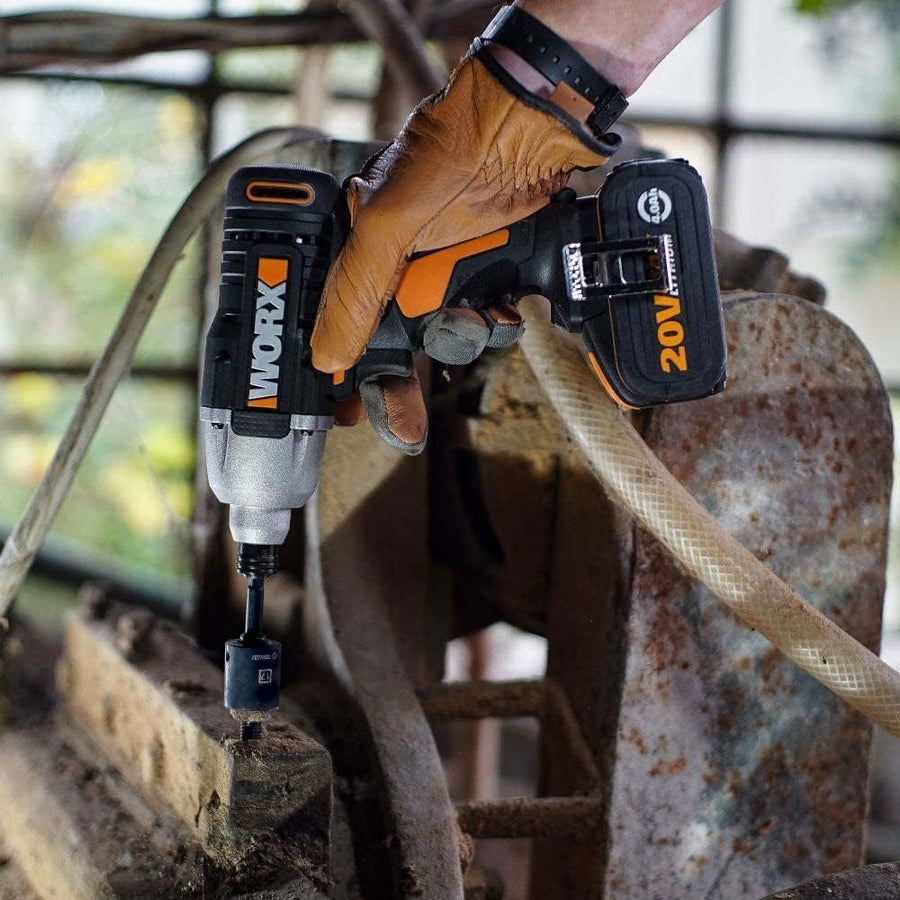 - Komfortabel: Der Schrauber liegt bequem in der Hand und lässt sich dank seines kompakten Designs überallhin mitnehmen / Die PowerShare Akkus sind mit anderen WORX 20V Geräten kompatibel