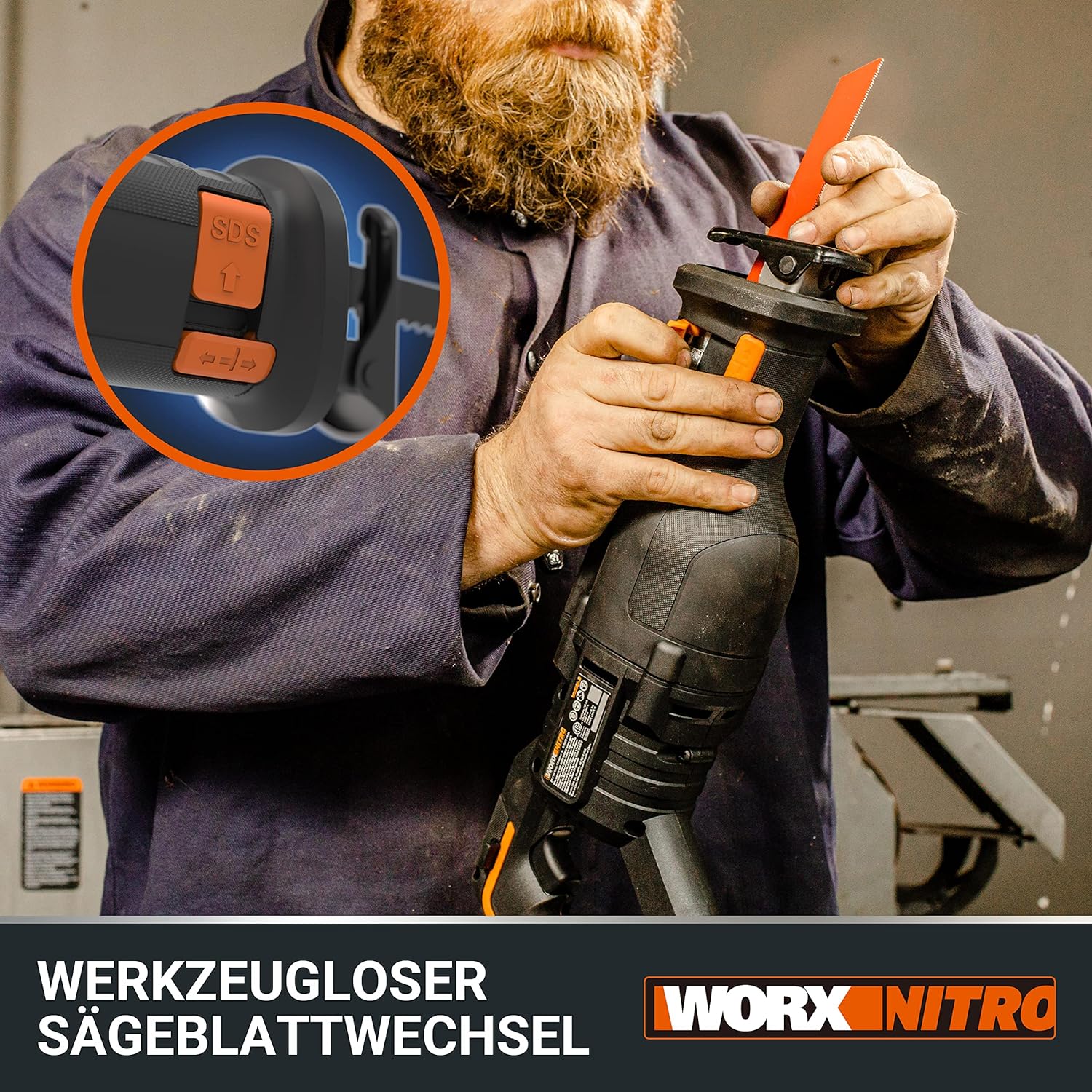 - BÜRSTENLOSE MOTORTECHNOLOGIE: Der Motor der WORX Akku Säbelsäge hat 50 % mehr Laufzeit, 25 % mehr Leistung und eine 10-mal längere Lebensdauer als Elektrowerkzeuge mit herkömmlichen Bürstenmotor.