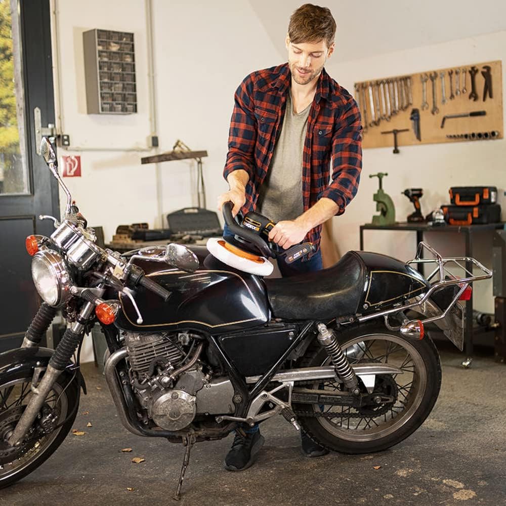 - Lieferumfang: 1 x WORX WX856 Akku-Poliermaschine / Inkl. 1 x Auftragshaube aus Frottee und 1 x Polierhaube aus Wolle / Mit Akku und Ladegerät