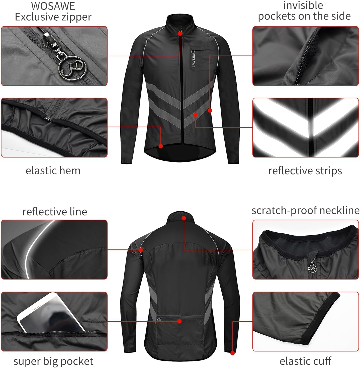- 【Ultraleicht & Showerproof】- Fahrradjacke aus weichem Polyester, leicht, atmungsaktiv und wasserdicht, um den Fahrwiderstand zu reduzieren und Spritzer und leichten Regen abzuhalten.