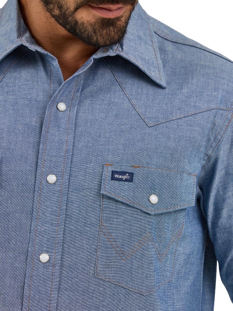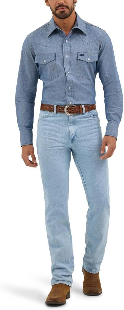 PRODUKTBESCHREIBUNGEN Seit 1947 setzt Wrangler sich unermüdlich für hochwertige Bekleidung ein, die zu deinem Leben passt. Wrangler füllt deinen Kleiderschrank mit authentischen Hemden mit Druckknöpfen, T-Shirts, Jacken und echtem Western-Denim, mit denen du dich im echten Western-Stil wohlfühlen kannst. Unsere Hemden zeichnen sich durch kultige Details wie Perlmuttdruckknöpfe, spitze Passe, W-Nähte an den Taschen und gespreizte Kragen aus. Die Jeans sind aus 100 % schwerem Denim oder mit etwas Stretchanteil für zusätzlichen Komfort gefertigt und verfügen über einen Wrangler-Aufnäher, W-Nähte an den Taschen und einen klassischen Stil mit 5 Taschen. Unsere mit Sorgfalt gefertigte Western-Linie ist für Herren ausgelegt, die ihren Tag schon vor Sonnenaufgang beginnen und nicht aufhören zu arbeiten, bis die Arbeit erledigt ist. This is Wrangler, made for you.
