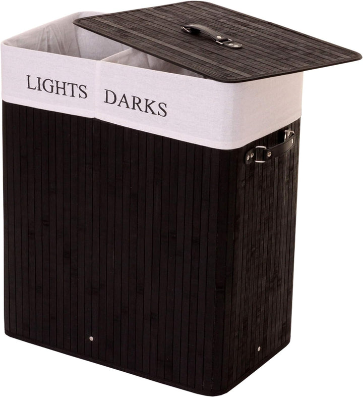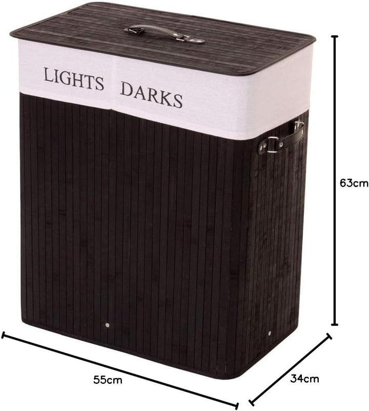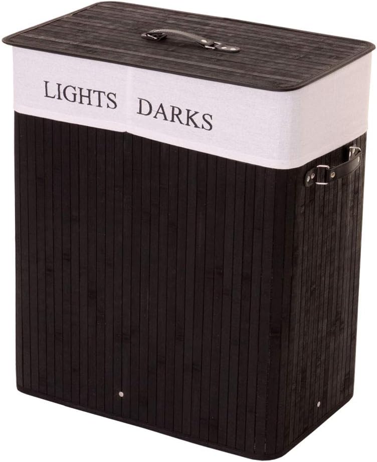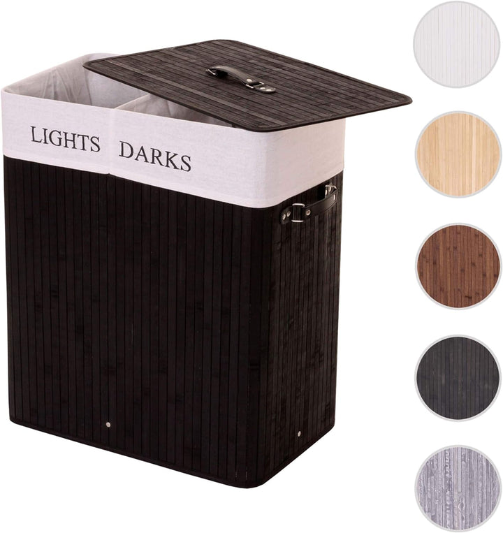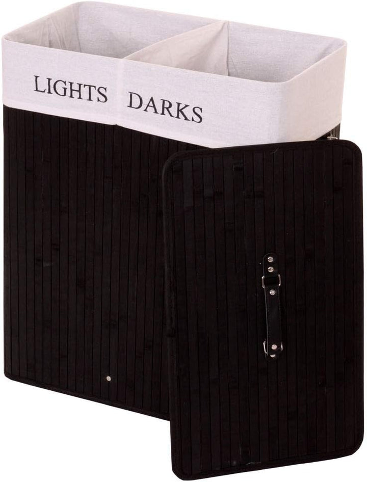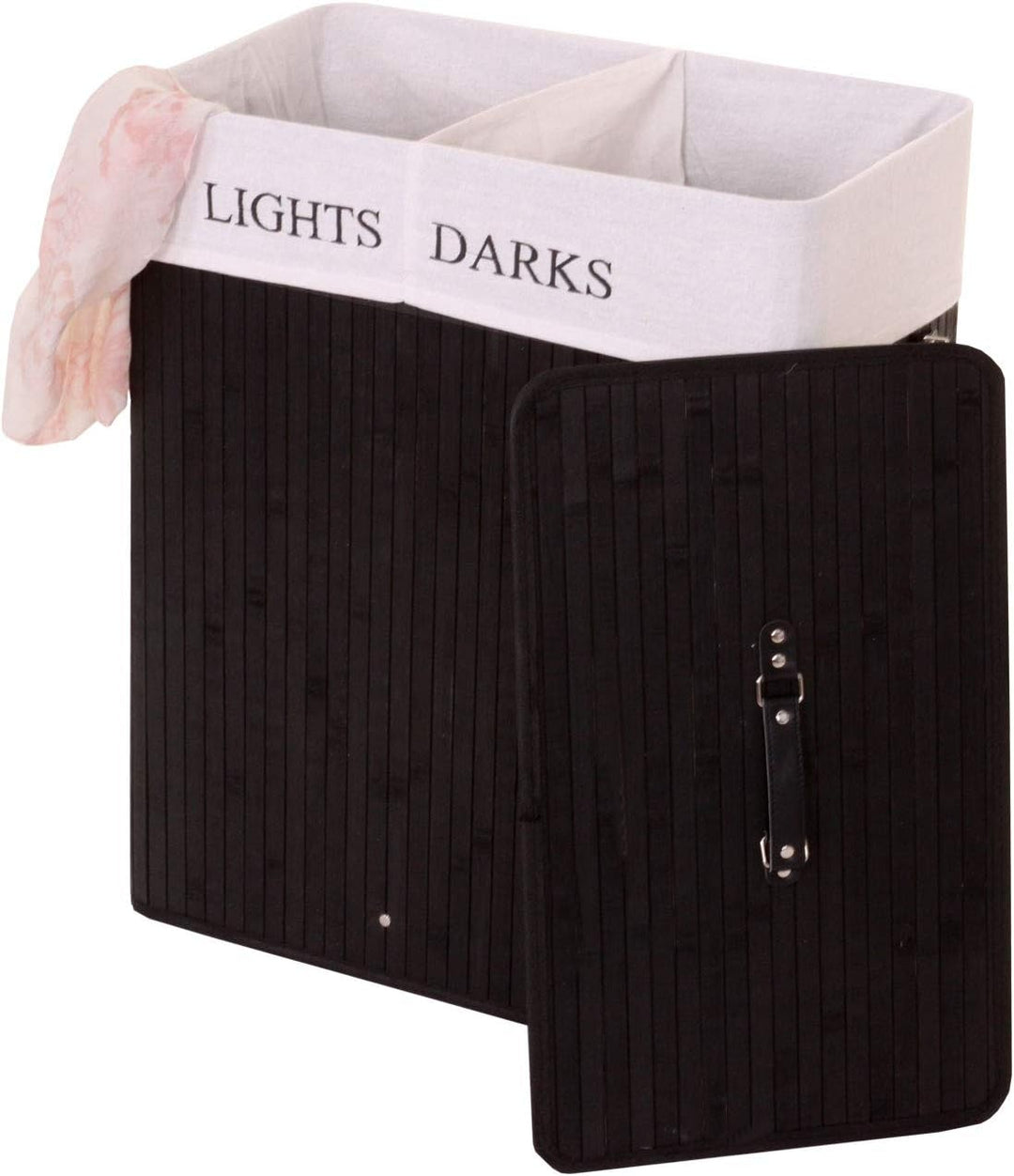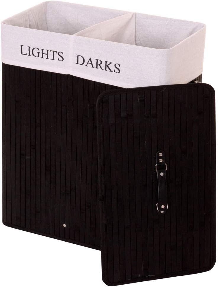 - Dimensionen (HxLxB): 63x34x55cm | Material: Korb: Bambus - Wäschesack: 53% Polyester, 30% Baumwolle, 17% Viskose | Farbe: Korb: schwarz - Wäschesack: creme