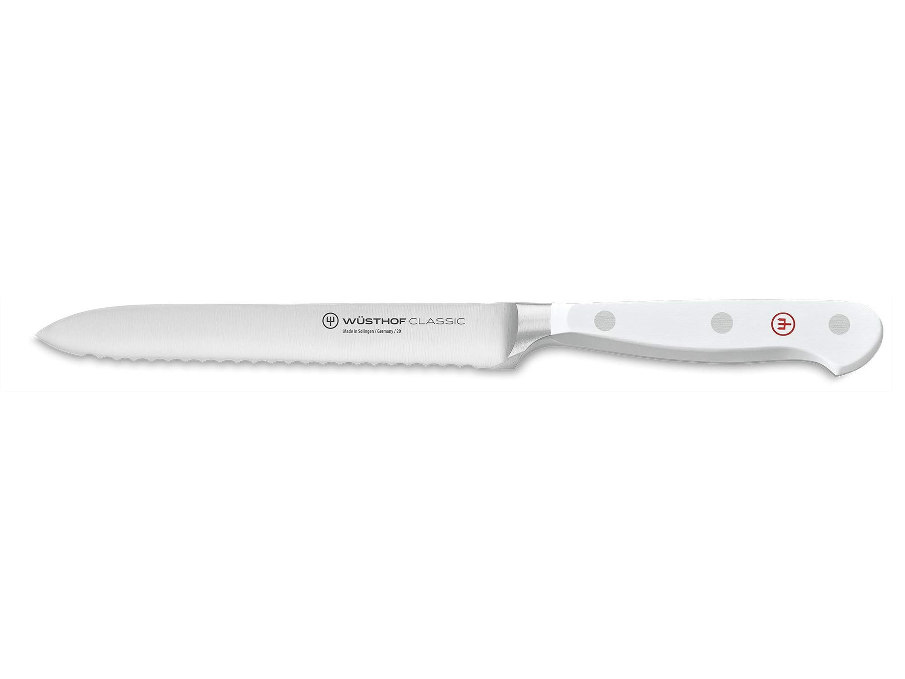 - Die Wüsthof Classic White Messerserie verbindet mit ihren einzigartigen, weissen Griffen moderne Leichtigkeit mit bester Qualität. So sind die hochwertigen Messer aus Solingen das elegante Extra in jeder Küche – z.B. dieses kleine Brotmesser