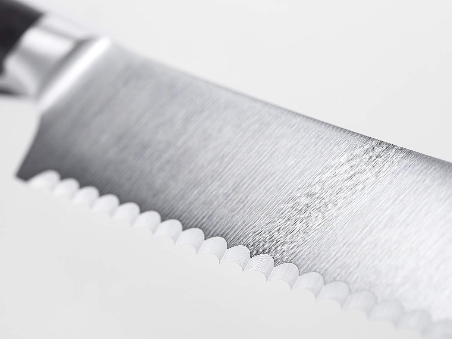 - Das handliche Messer mit sehr scharfem Sägeschliff schneidet sauber und ohne Reissen des Teiges durch feines Gebäck oder frische Croissants. Genauso gut eignet es sich für feste Tomatenhaut, seltene Früchte, die luftgetrocknete Salami bzw. den festen