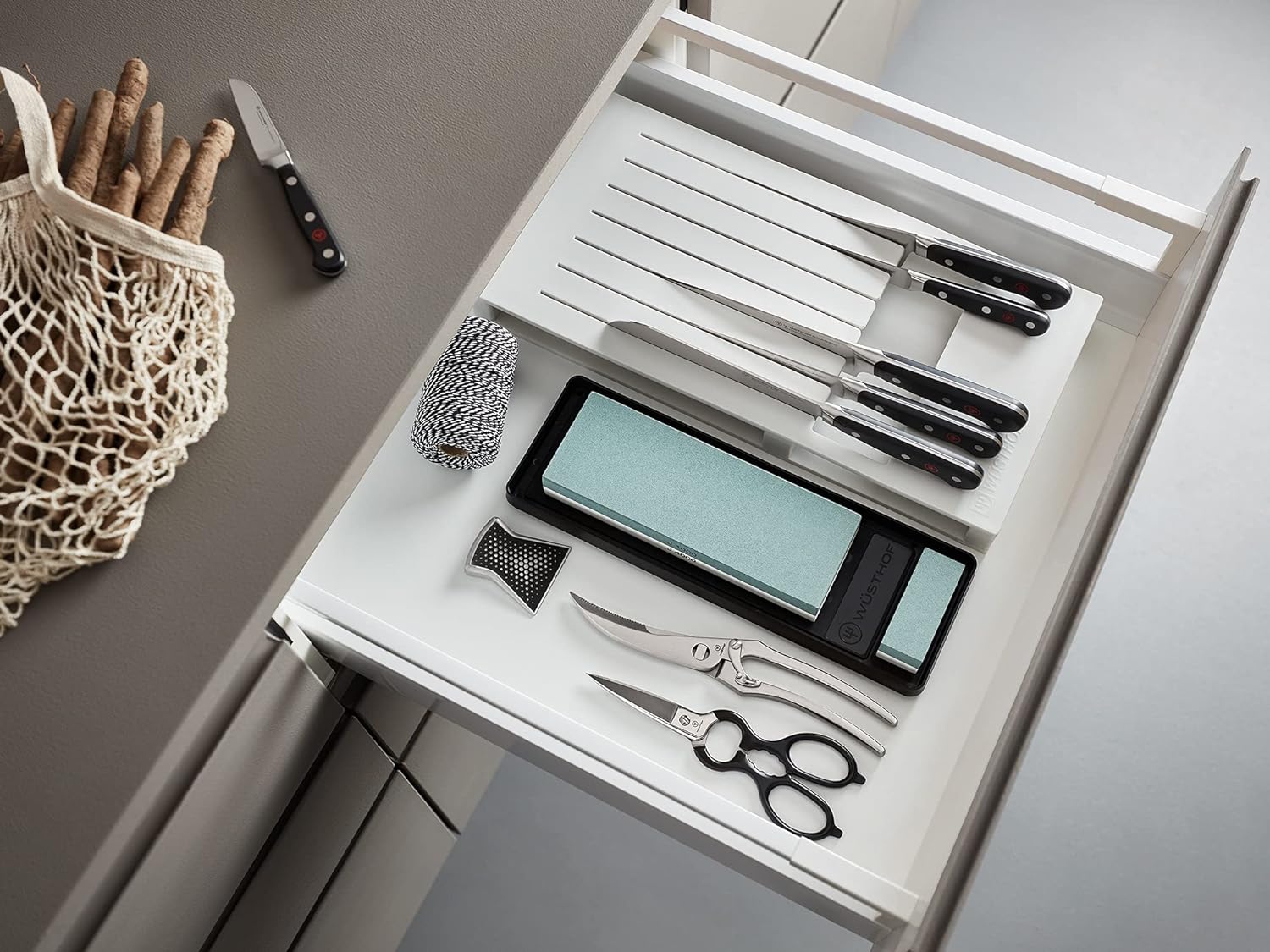 - Der Wüsthof Slider ist die ideale Winkelschleifhilfe für Schleifstein und erleichtert das manuelle Schärfen von Messern. Mehr Schärf-Equipment (Schärfstab, Wetzstahl), hochwertige Profi-Messer, Messerblöcke, Schneidbretter finden Sie im Wüsthof