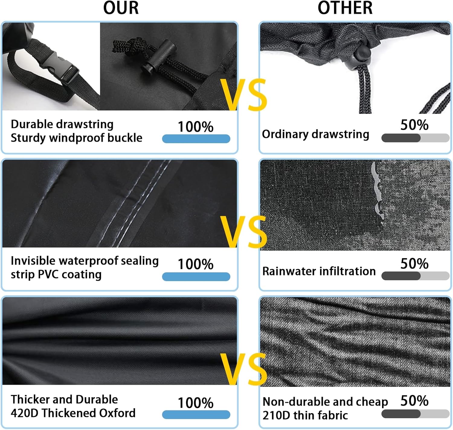 - HOCHLEISTUNGSFÄHIGE MATERIALIEN - Unsere Gartenmöbelabdeckung besteht aus hochentwickeltem 420D Oxford-Gewebe, das dicker als gewöhnliche Stoffe ist, eine bessere Wetter- und Hitzebeständigkeit aufweist und nicht so leicht zerfällt. Diese