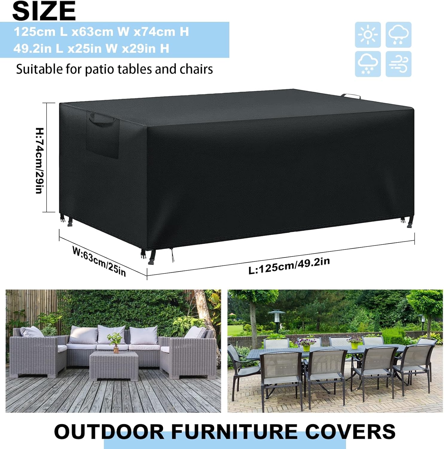 - RUNDUM SCHUTZ DER MÖBEL - Die Gartenmöbelabdeckung verhindert wirksam das Eindringen von Wasser, Staub und Schmutz, sie ist auch wirksam gegen UV-Strahlen, Sonne, Wind und Schnee. Ein Rundumschutz für Ihre Terrassenmöbel vor Staub, Sonne, Regen,