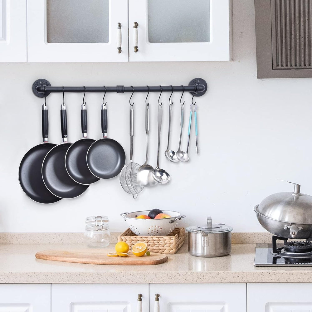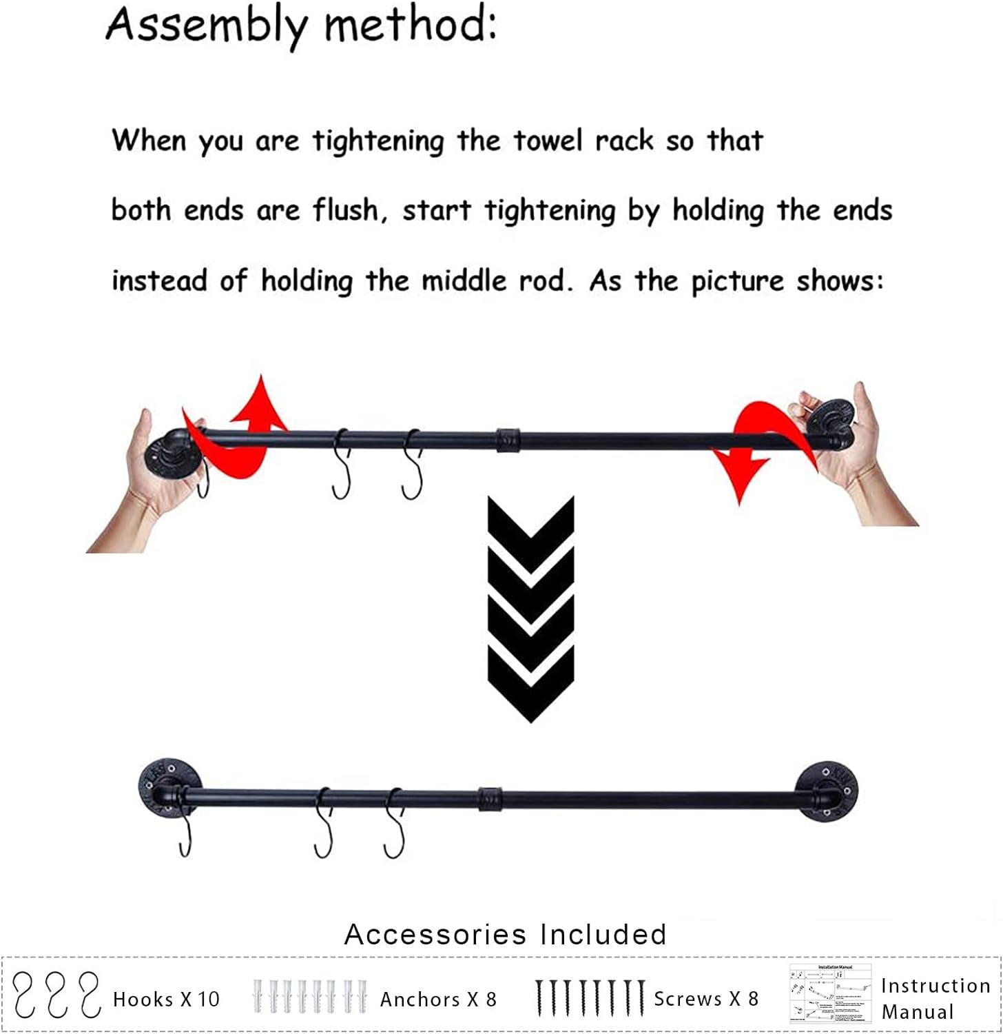- 【Upgrade Long Pipe Pot Rack】Topfaufhänger für die Küchenwandhalterung besteht aus 2 Teilen, die Gesamtlänge beträgt 96,5 cm nach der Montage. Fügen Sie 10 zusätzliche S-förmige Haken hinzu (die nicht leicht herunterfallende Haken sind), um