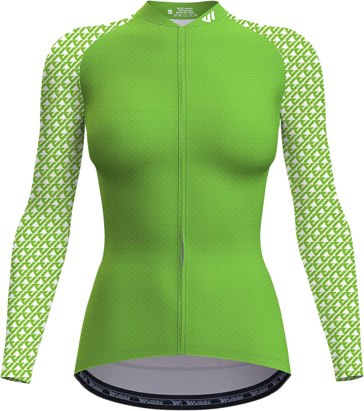 Wulibike Damen Radtrikot,Fahrradtrikot Damen Langarm Atmungsaktiv Rennrad Trikot Damen mit 3 Rückent