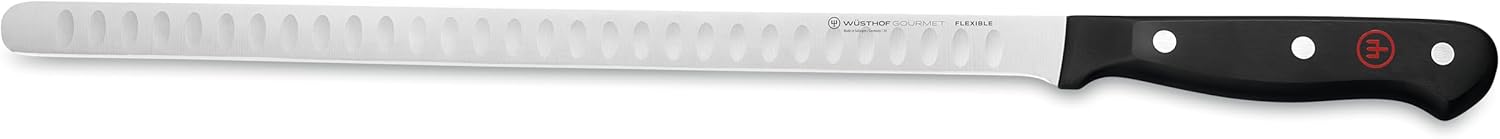 • Mit Gourmet hat Wüsthof Messer Basics im Angebot, die als scharfe Kochmesser nicht nur durch richtig gute Qualität und einen günstigen Preis begeistern, sondern als zuverlässige Solinger Messer – so wie dieses lange Spezialmesser für Lachs und Fisch