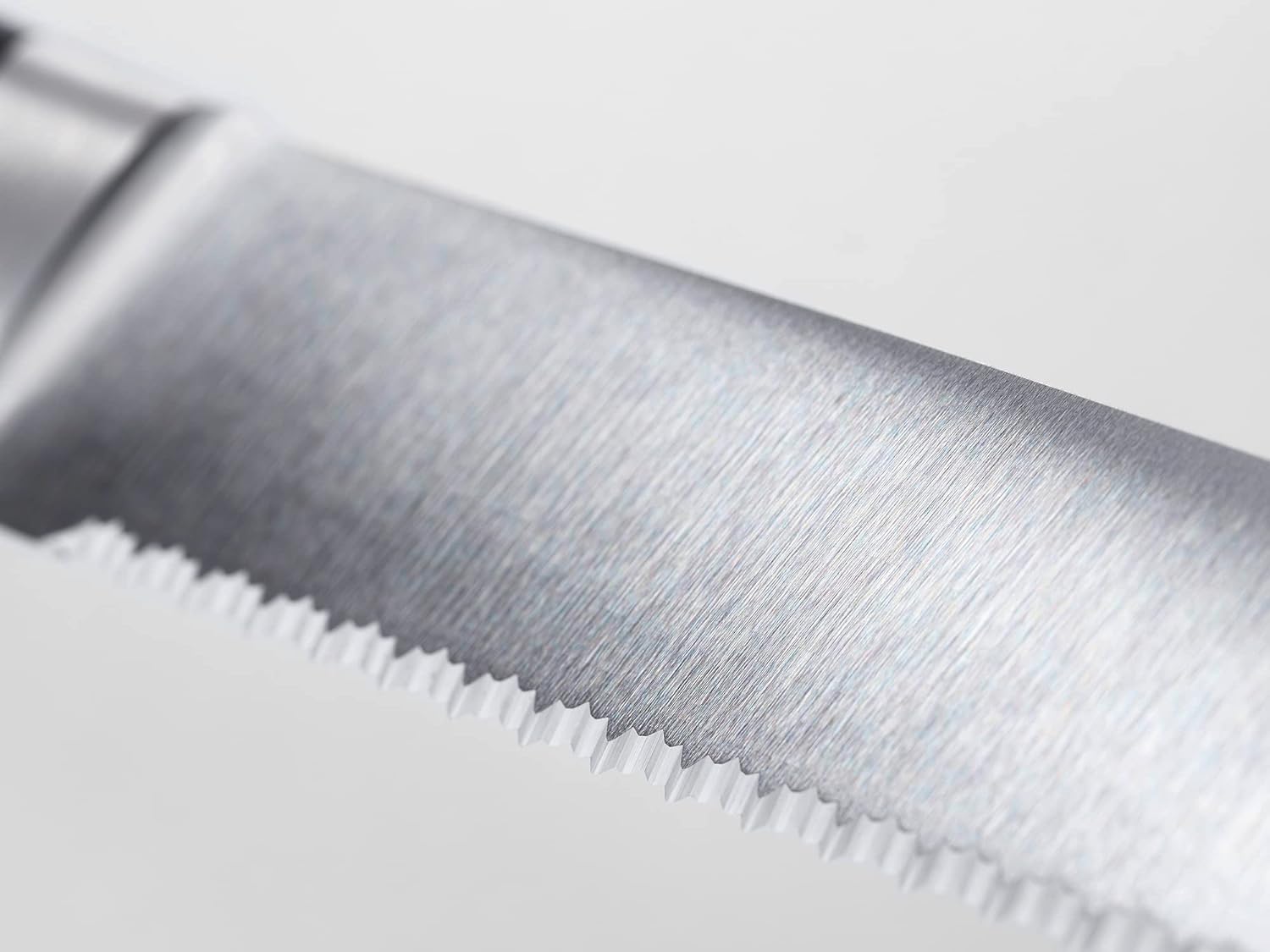- Die rostfreien Klingen mit 58° Rockwell Härte werden im laserbasierten Schärfverfahren geschliffen und erhalten danach in Handarbeit ihre ultimative Schärfe. Die Messer sind ausserordentlich belastbar. Wüsthof – Made in Germany, geschmiedet in