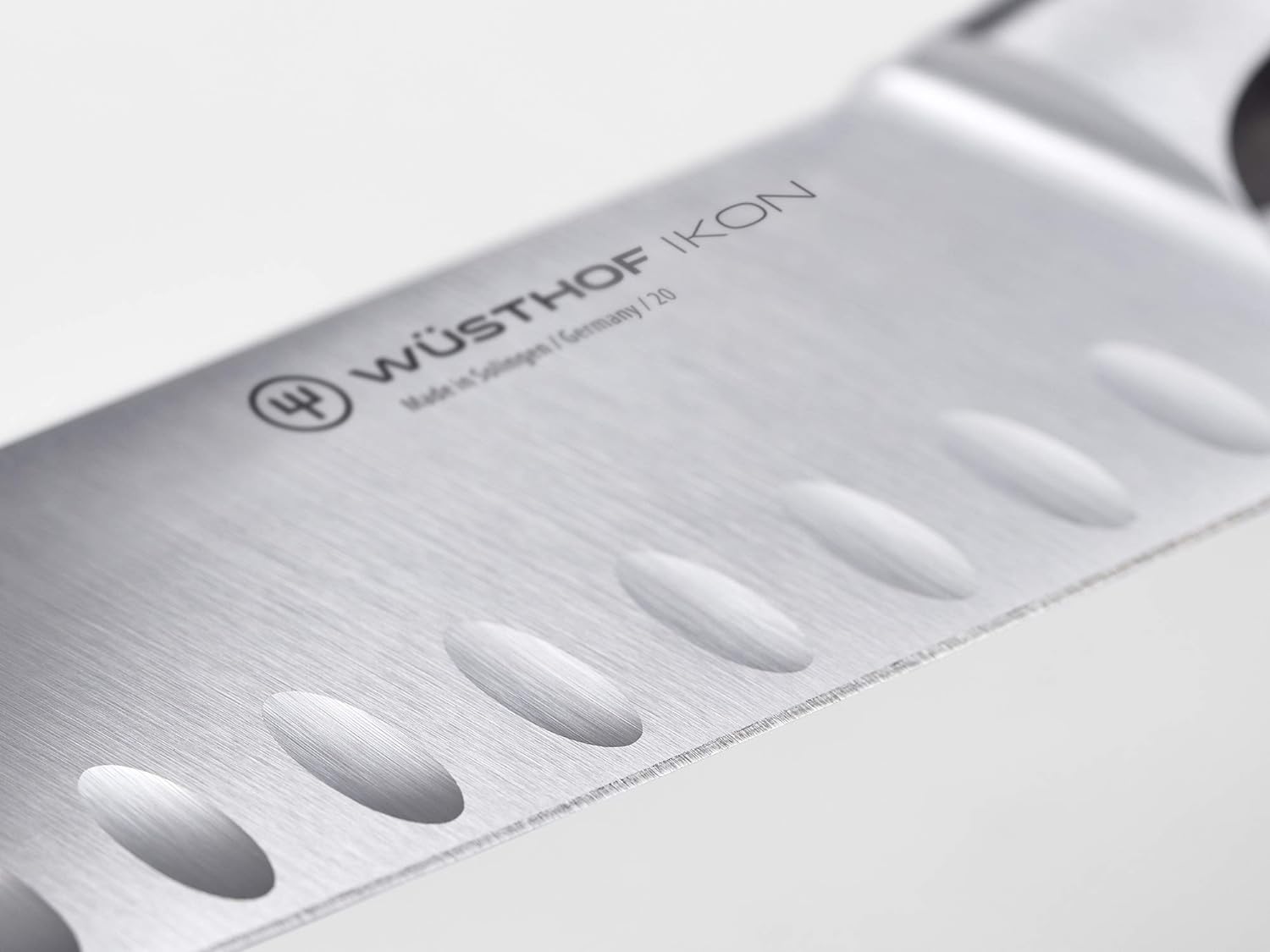 - Die extrem scharfe Klinge, die optimale Balance durch die spezielle Doppelkropf-Geometrie und der erlesene, individuell gemaserte Holzgriff machen die Messer der Ikon Serie zu einem eleganten Eyecatcher – auch in der Messerauswahl von Profi-Köchen