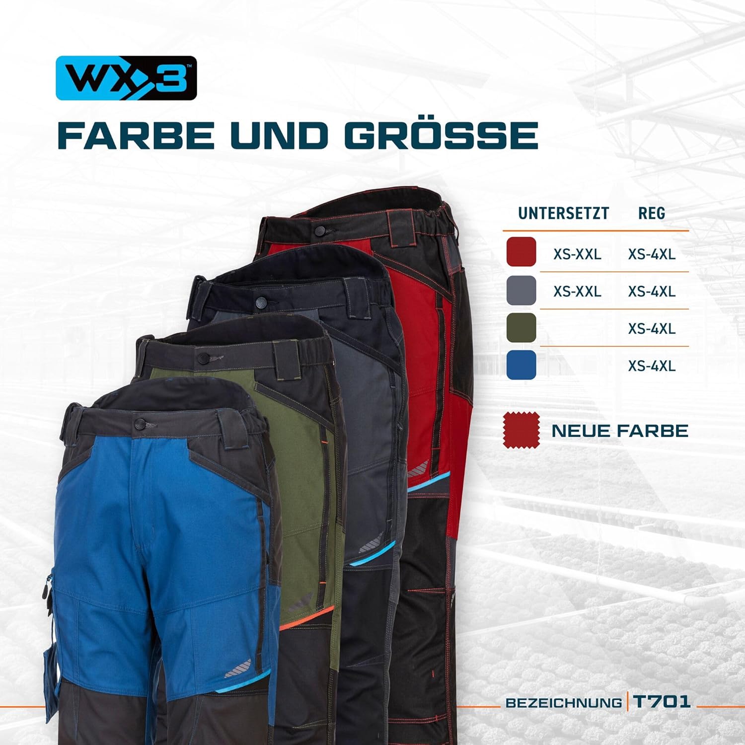 PRODUKTBESCHREIBUNGEN Moderne Arbeitshose, die so gut passt, wie sie aussieht. Hergestellt aus strapazierfähigem Polycotton-Segeltuch und mit dreifachen Nähten. Diese Hose wurde für die Ewigkeit entwickelt. Innovative Designmerkmale wie Stretcheinsätze bieten hervorragenden Komfort und Flexibilität in wichtigen Bewegungszonen. Weitere praktische Merkmale sind hohe Taille mit seitlicher Elastizität, Kniepolstertaschen, die zusätzlichen Schutz bei allen Arbeitsbedingungen bieten, und mehrere Taschen bieten sicheren Stauraum. Mehr