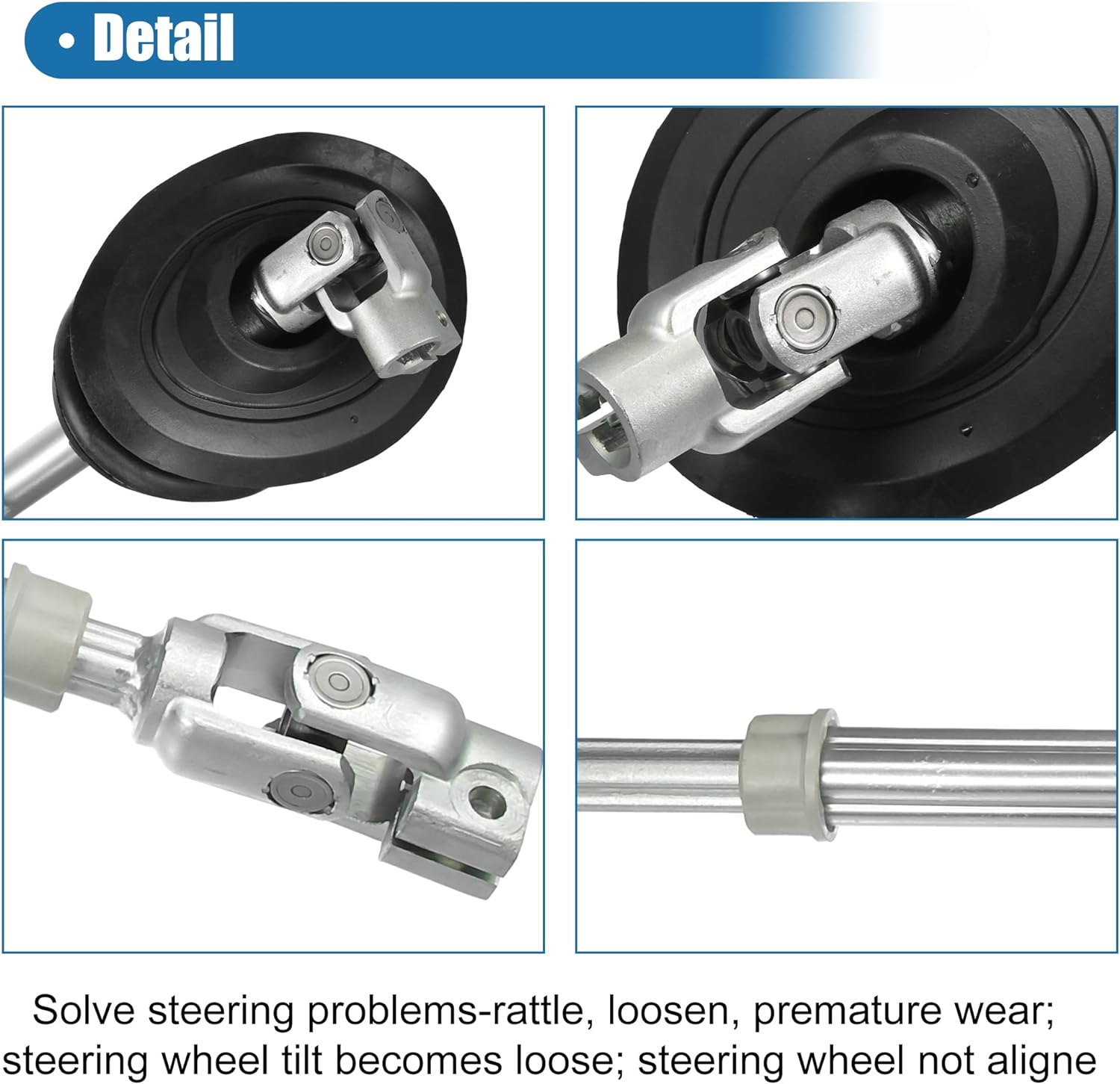 - [Funktion] Bei Fahrzeugen mit Zahnstange und Ritzel hält es den Winkel zwischen der Welle und dem Getriebe, in dem es das Drehventil und das Lenkrad zusammenhält. Ein U-Gelenk verbindet das Lenkrad, während das andere mit dem Lenkgetriebe