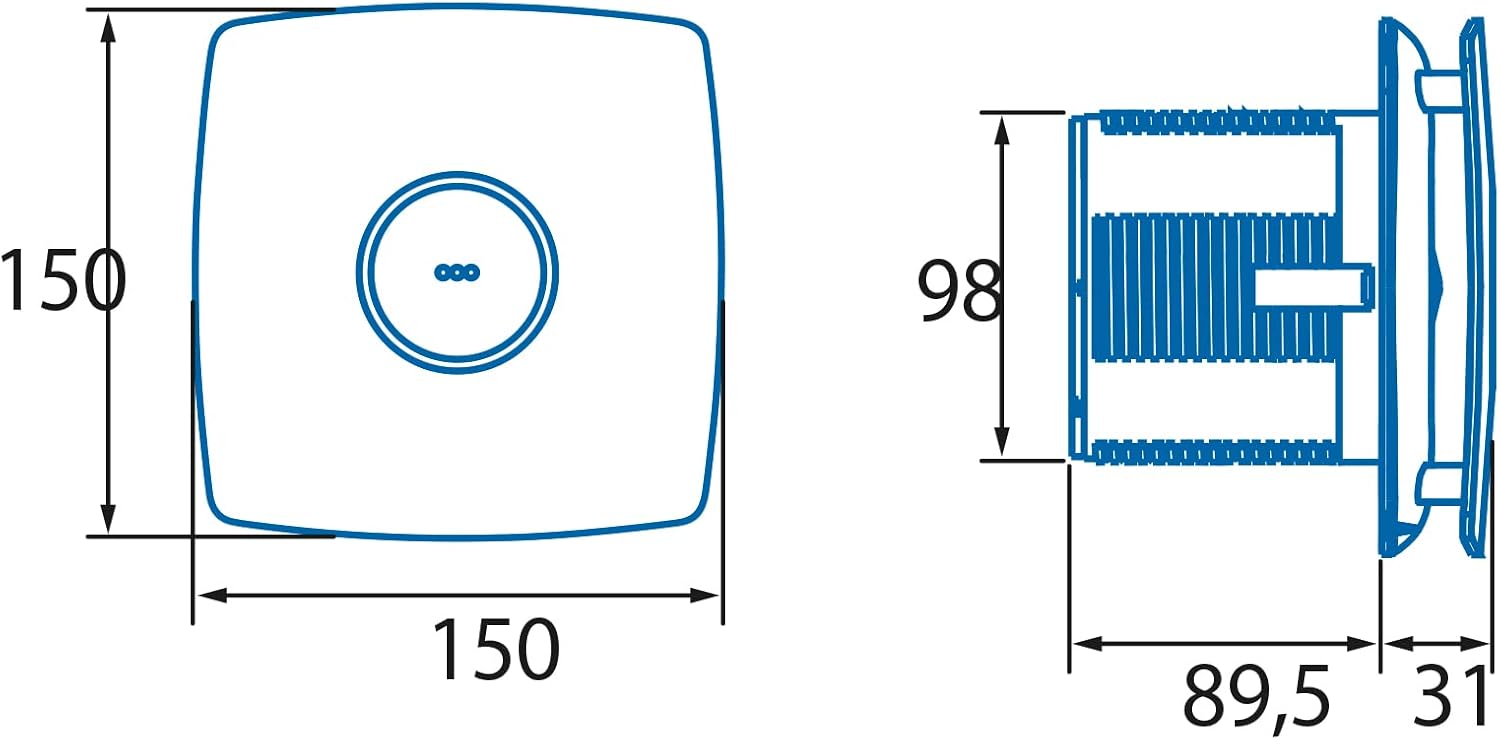 • ABLUFTVENTILATOR GERÄUSCHARM: Der Ventilator mit Perimeter- und Zentralsystem ist eine der effizientesten und leisesten Badabzugshauben. Er kann einen Luftstrom von 98 m3/h bewegen, bei einem Schallpegel von 38 dB. Dabei verbraucht es 15 W Strom.
