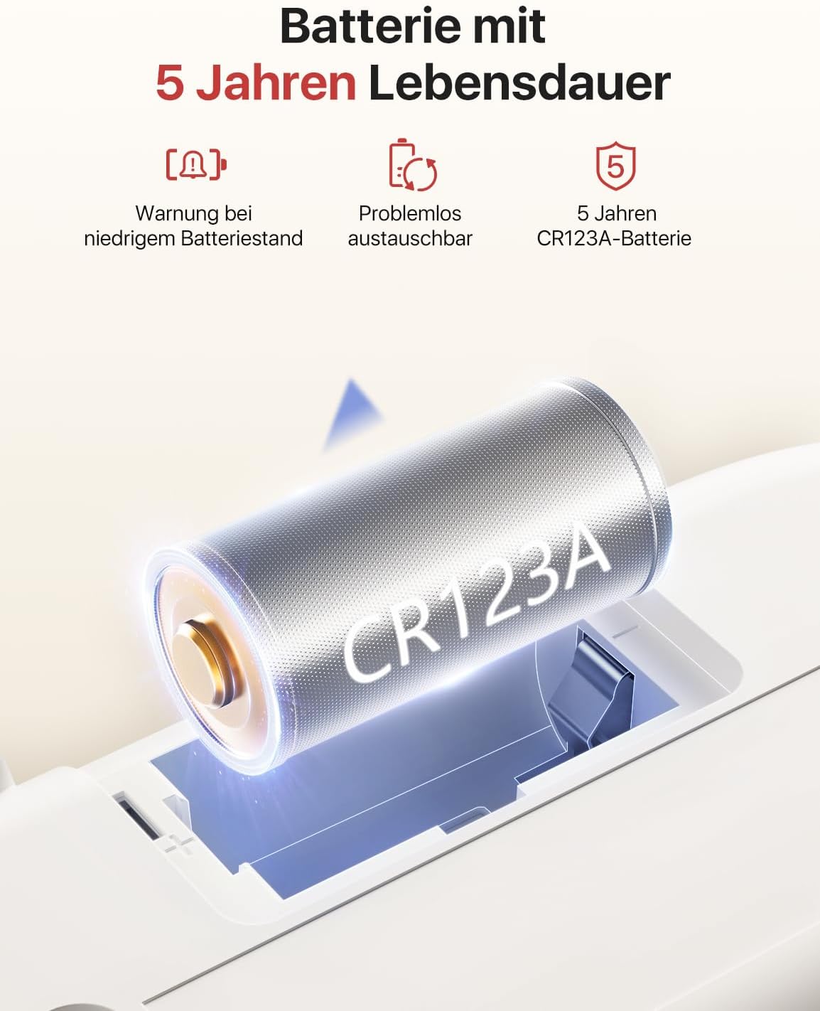 • SOFORTIGE WARNUNG: Eine Frühwarnung wird durch einen lauten 85 Dezibel Alarm ausgelöst