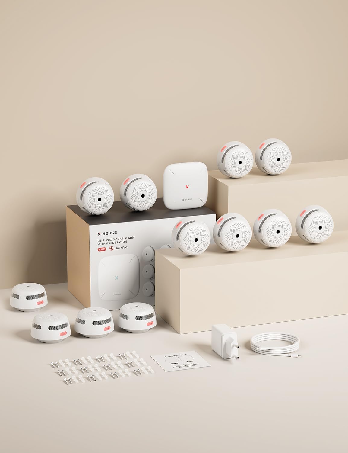 • Sofort betriebsbereit: 1 SBS50 Basisstation, 6 XS01-M Rauchmelder, 1 Netzadapter und 1 Netzkabel sind im Lieferumfang enthalten. Laden Sie einfach die X-Sense Home Security App herunter, verbinden Sie die Geräte über das 2,4-GHz-WLAN-Netzwerk (nicht