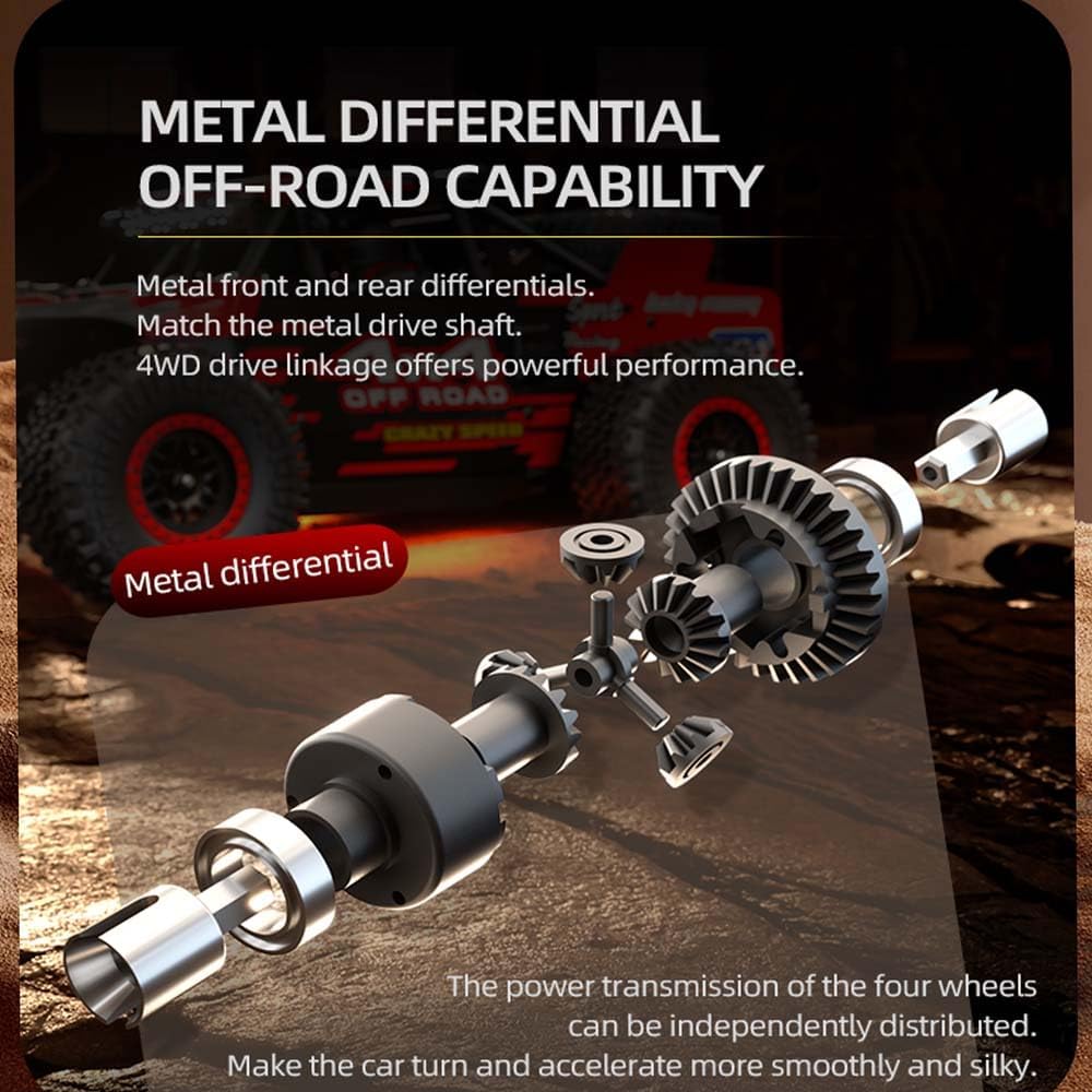 - 【Premium-Konfiguration】Das magnetische Karosseriedesign erleichtert den Batteriewechsel. Professionelles Chassis aus Nylonmaterial + Metallkomponenten + elektronischen Elementen. Vorder- und Hinterachsdifferentiale wurden für eine verbesserte