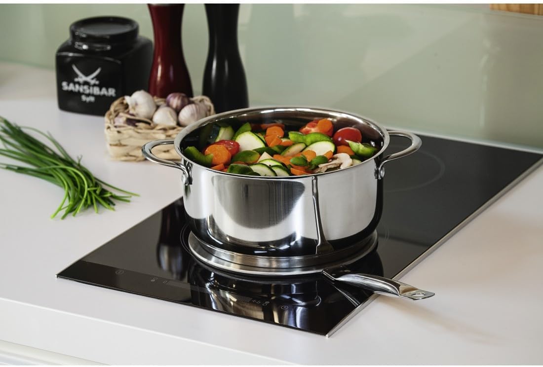 - Adapterplatte zur Verwendung nicht-magnetischer Kochgefässe auf dem Induktionsherd: Passend für Gefässe bis 19 cm Durchmesser, aus Sandwichmaterial bestehend aus rostfreiem Edelstahl mit Aluminiumkern