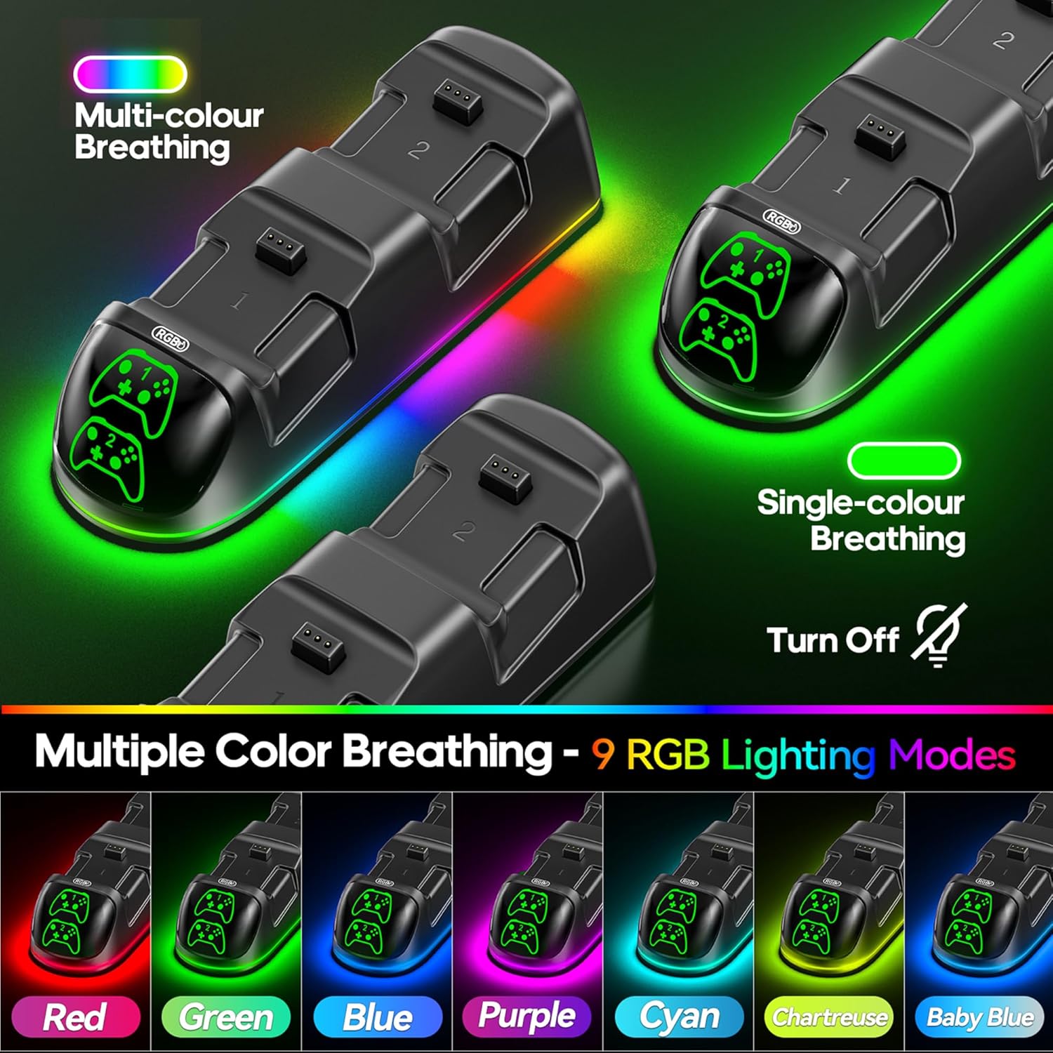 - 【Xbox Ladestation für Controller】Geliefert mit 2 wiederaufladbare Akkus kann diese Controller Ladestation an aller Xbox Controller anpassen. Es ist universal für Xbox One / Xbox One S / Xbox One X / Xbox One Elite 4 / Xbox Series X / Xbox Series S