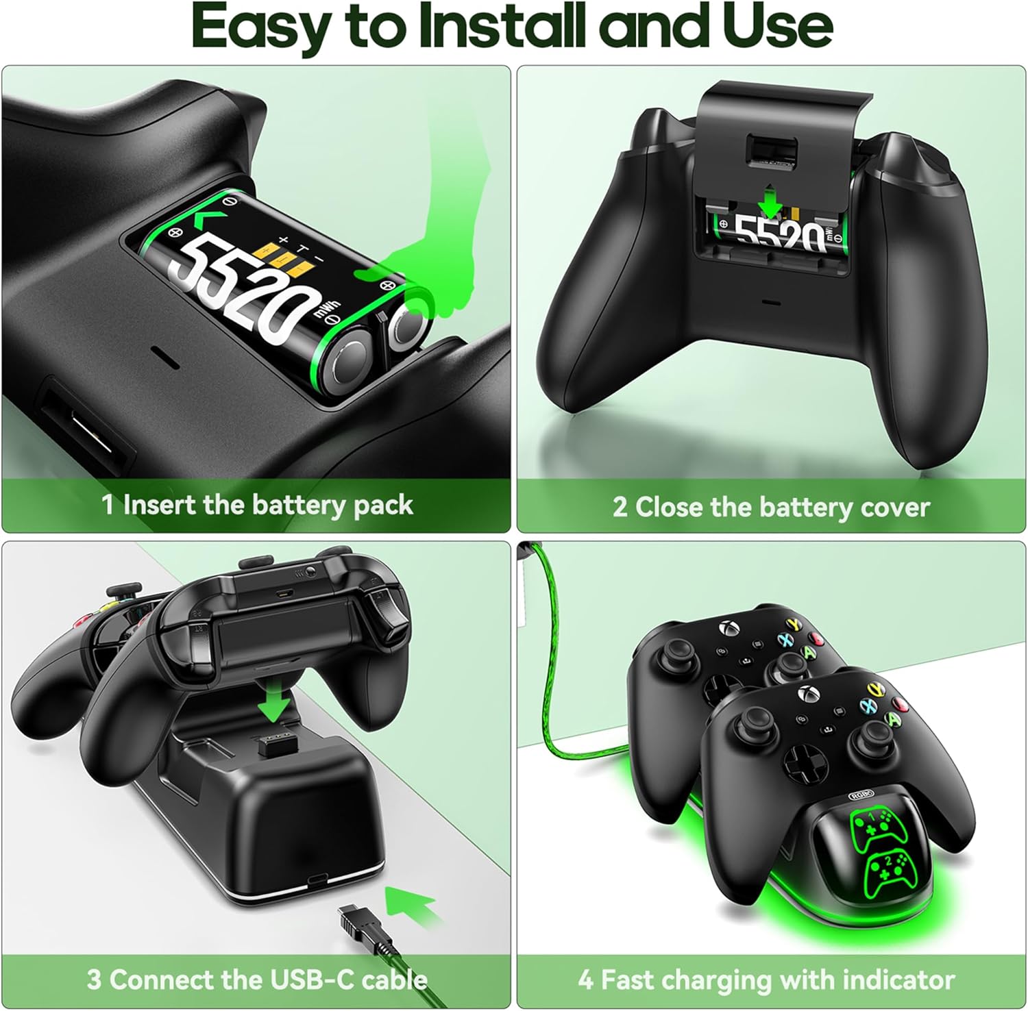 - 【Sicher und Benutzerfreundlich】 Setzen Sie einfach das Xbox Controller Akku an den Controller ein, und setzen Sie das Deckel an. Stell die Controller dann an Xbox Ladestation. Fertig! Dieser Xbox Series X Controller Ladestation wird mit einem