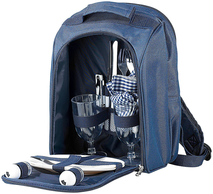 - 2in1-Picknick-Rucksack mit integrierter Kühltasche • Verstellbarere Schultergurte mit bequemem Polster plus Handgriff • Inklusive Füllung für 2 Personen (13 Teile)