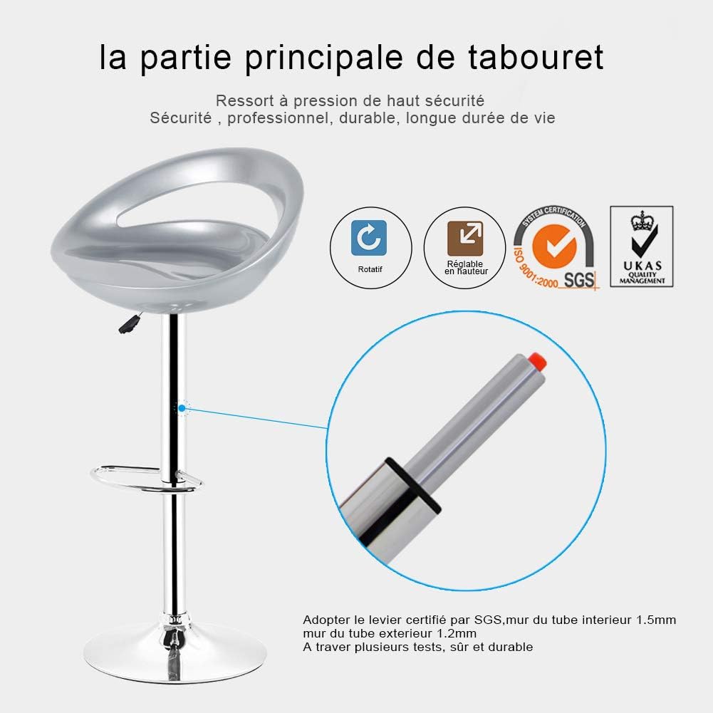 - Stabilität: Der Antirutschring unter der Basis des Drehstuhl ist speziell entworfen, um die Stabilität dieses Barstuhls zu verbessern, den Boden vor Kratzern zu schützen und Geräusche zu reduzieren, wenn dieser Barstuhl bewegt wird.