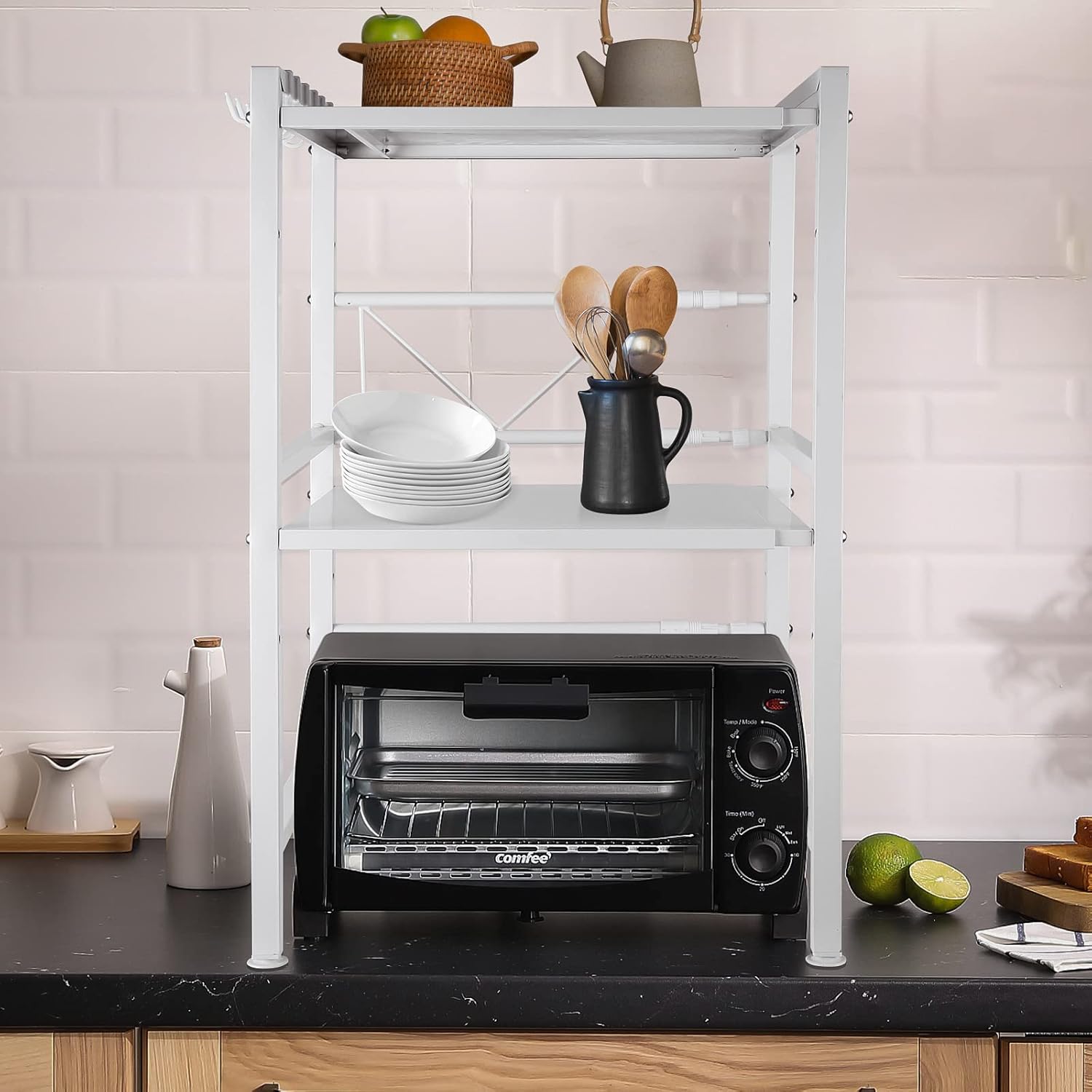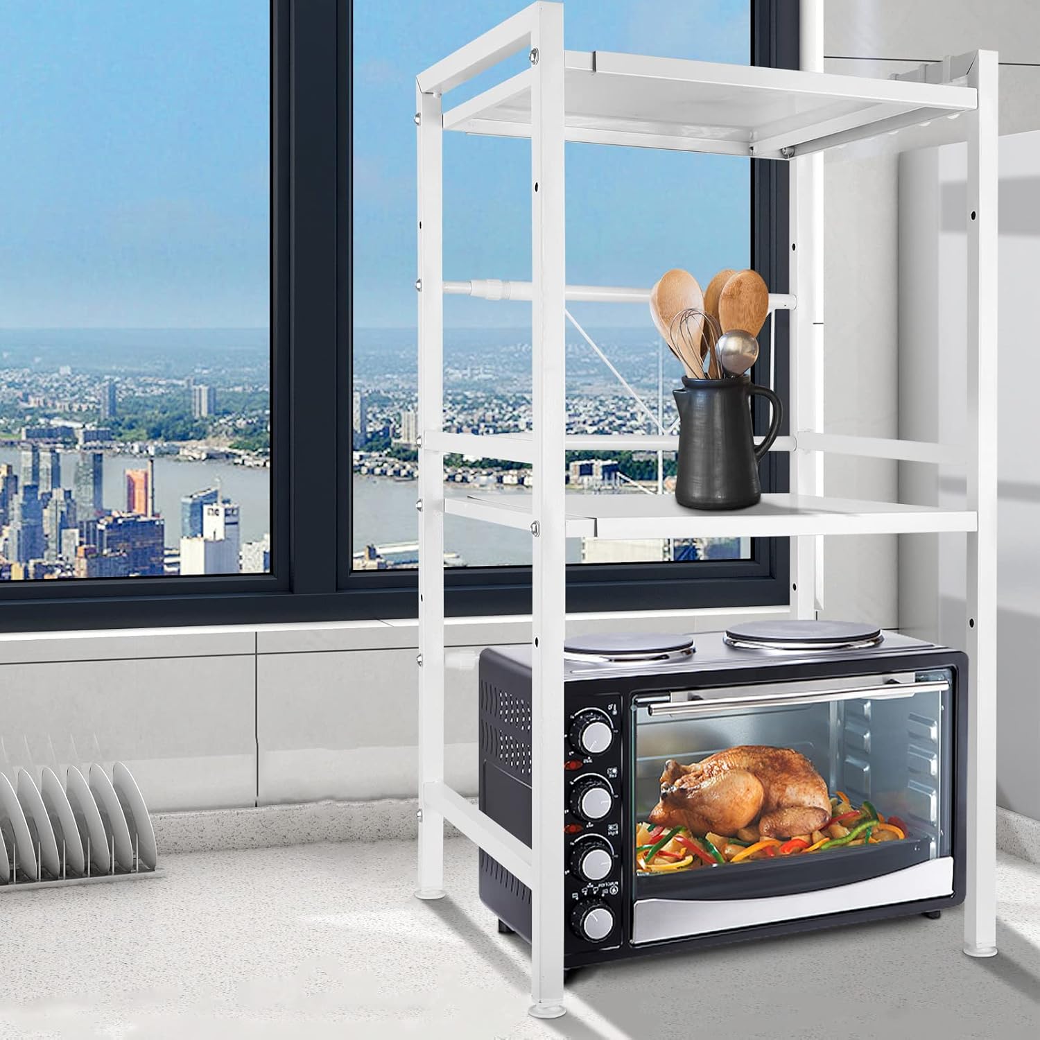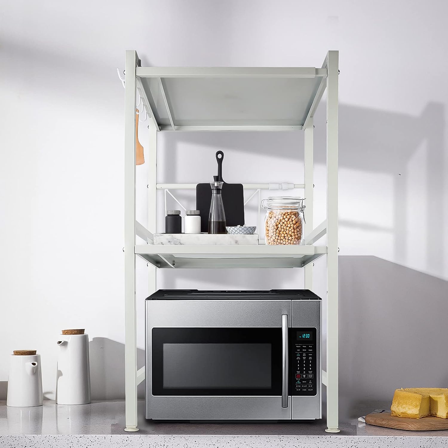 • [Tragfähigkeit]: 2CM breit verdicktes Stahlrohr, verdickt und fest gestützt, aus echtem Material, mit einem starken Regal, ohne Angst vor schwerem Geschirr. Erweiterbares Design, um verschiedene Grössen von Öfen/Mikrowellenherden zu erfüllen.
